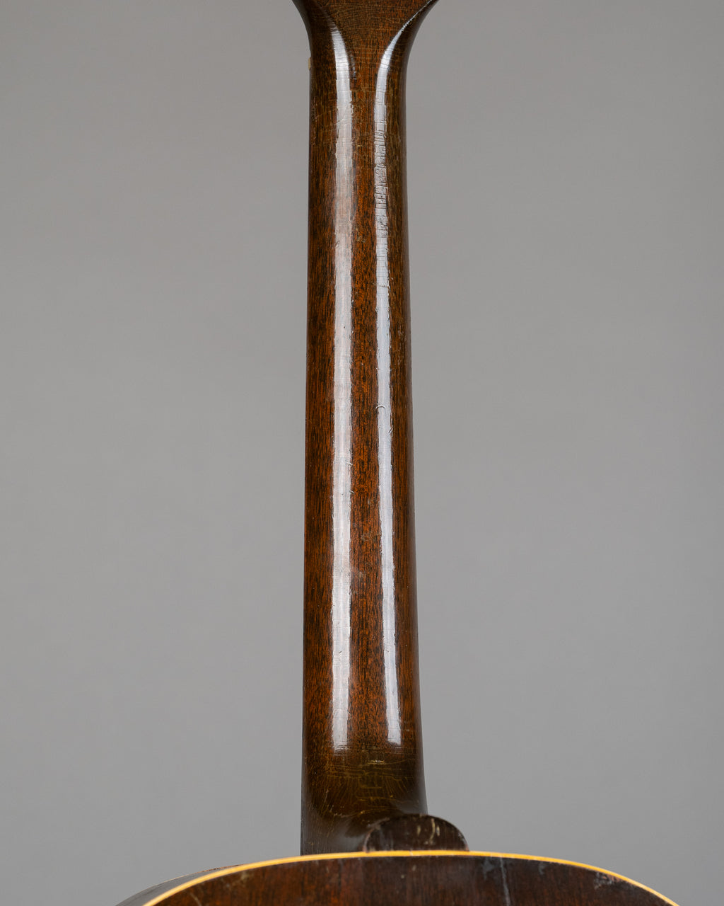The neck has had a reset in the past, so the geometry is good, and it has since received a refret along with a new bone nut and saddle. The machine heads have been replaced. The bridge plate is in notably good condition for a guitar of this age, which is always reassuring to see.