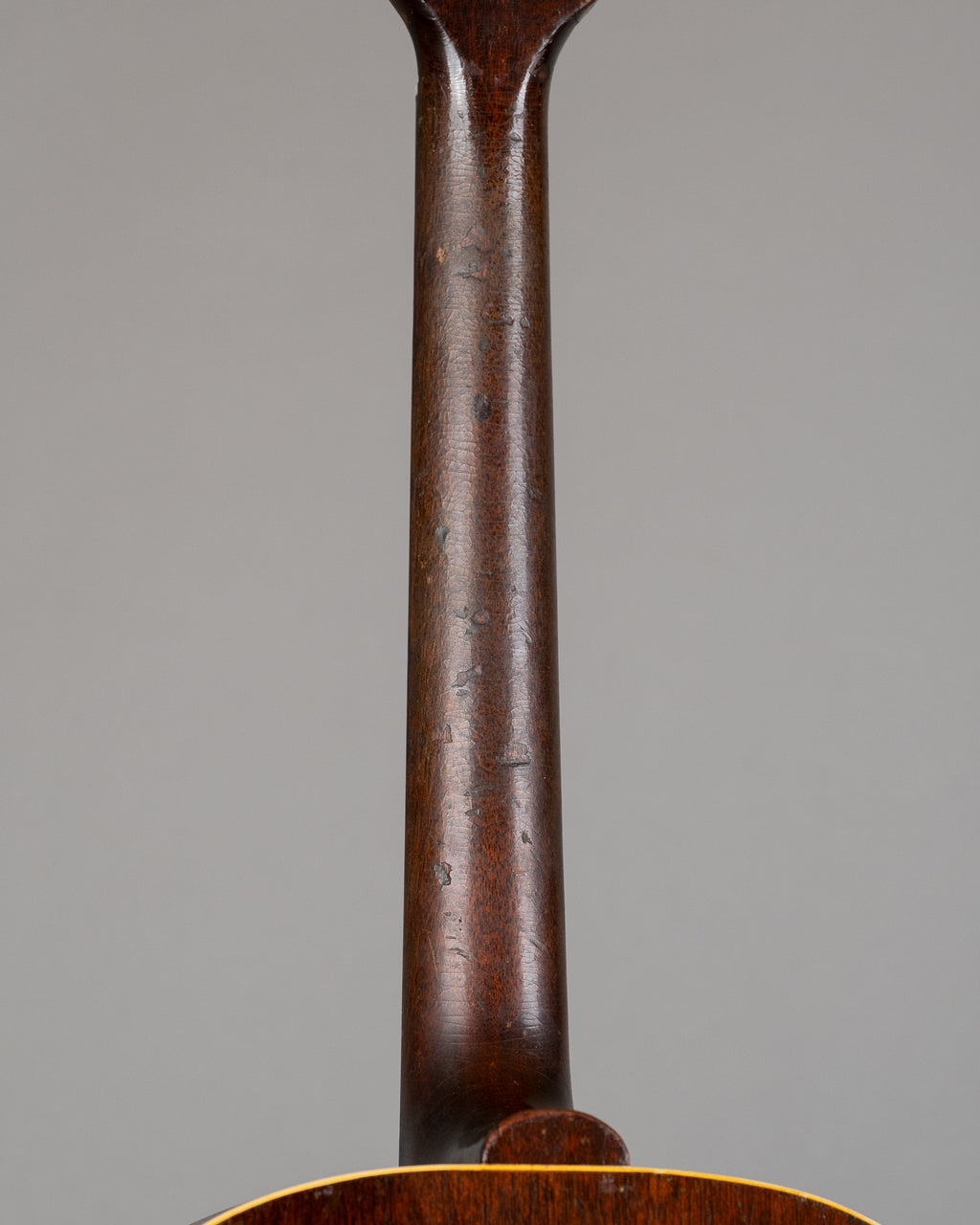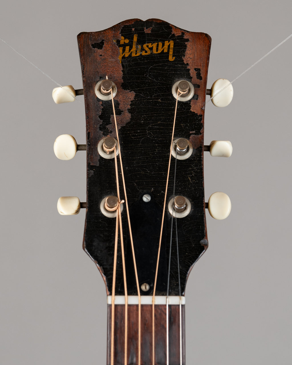 The headstock has lost a bit of finish. Bridge has been swapped from right to left and back again. Much checking over the body and, well shoot, take a look at the pictures. Wear on both sides of the soundhole.