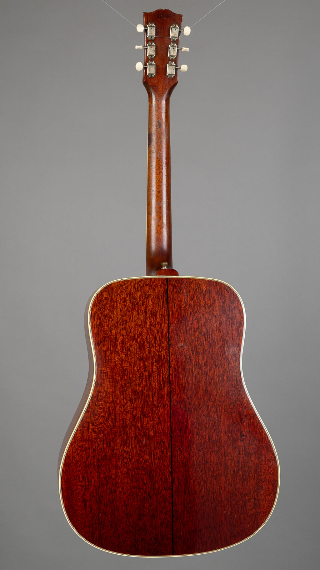 1964. Second year of the square shoulder Southern Jumbo and a lovely one at that. One owner since it was bought new in 1965, kept in honest condition with a beautifully aged burst and a rich, open voice that only a sixties ceramic saddle Gibson can pull off. Strong mid push, warm lows and a woody top that feels broken in the moment you touch it. Lovely full nut width with a very friendly neck profile.
