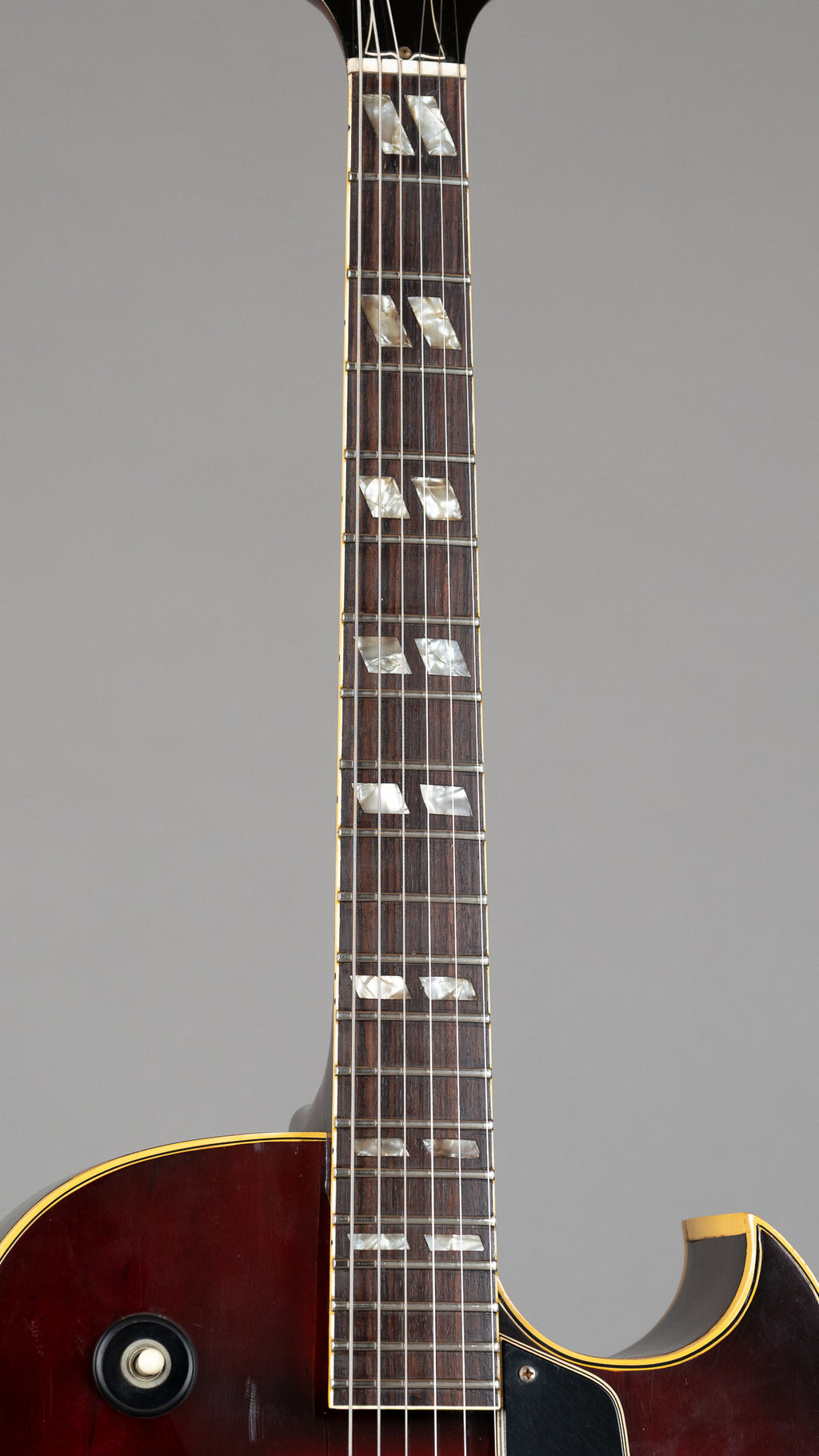 The usual stuff: maple body, mahogany neck, and rosewood fretboard with split parallelogram inlays. Trapeze tailpiece, and an ABR-1 bridge on a rosewood base. Dimensions for this period, at the tail end of the post-57/pre-70s version, are a 16 ¼-inch wide body, a 24 ¾-inch scale length, and a 1-9/16-inch nut width.