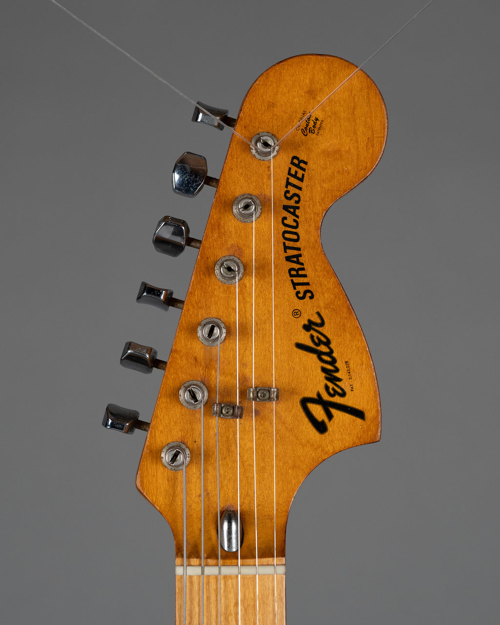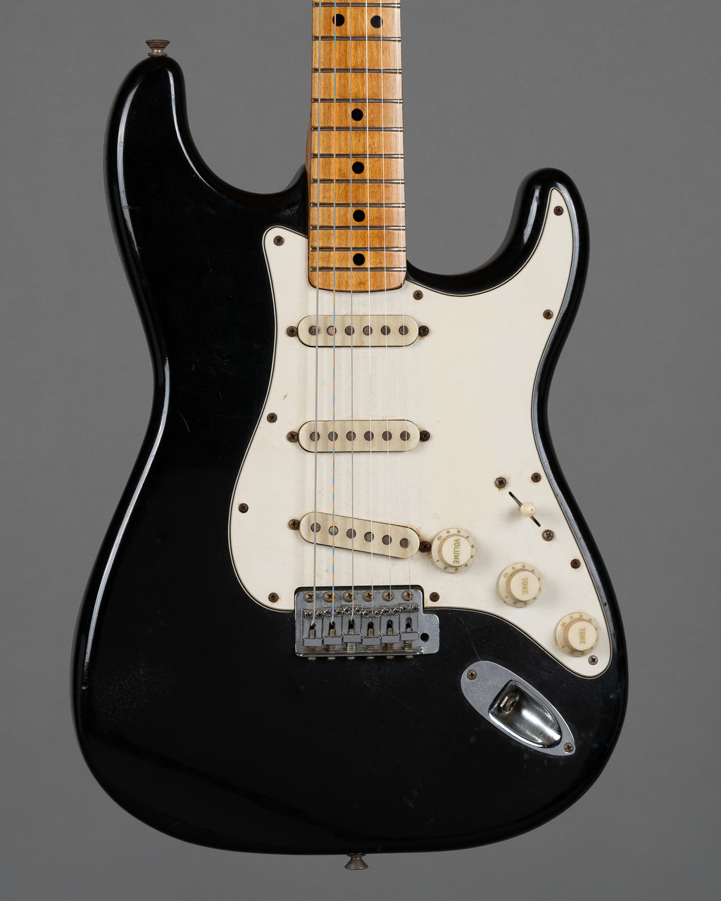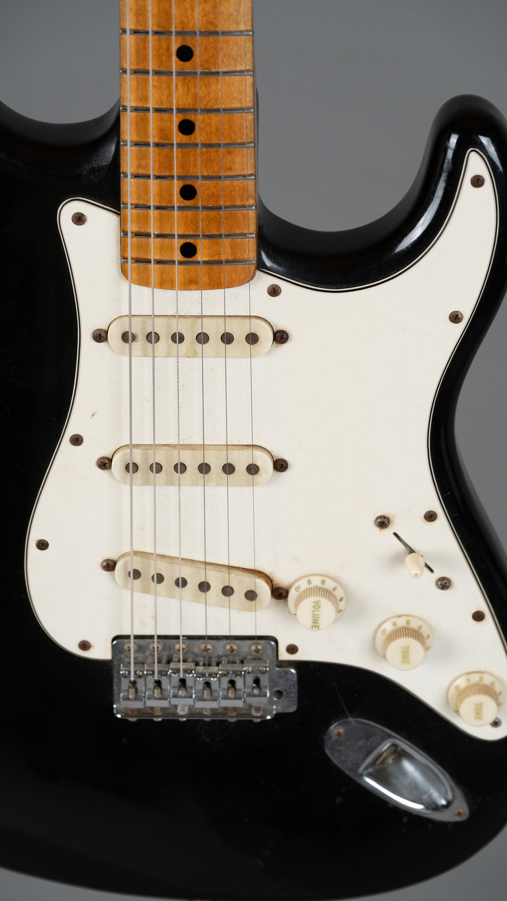 This is the one you've been waiting for. A killer mid-’70s Strat that breaks the mould by being feather-light at just over 3kgs. Black finish with plenty of natural wear, refretted in house with a clean board refinish and light neck overspray. Pickups are all factory ’75 with two original ’74 pots and a ’78 volume replacement. Genuinely snappy, resonant and full of bite. Without a doubt one of the liveliest Strats we’ve had through from this era. An excellent value proposition as both a vintage piece and a players instrument. Includes a period hard case.