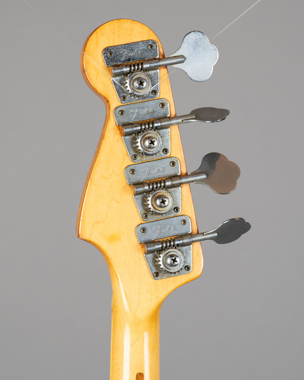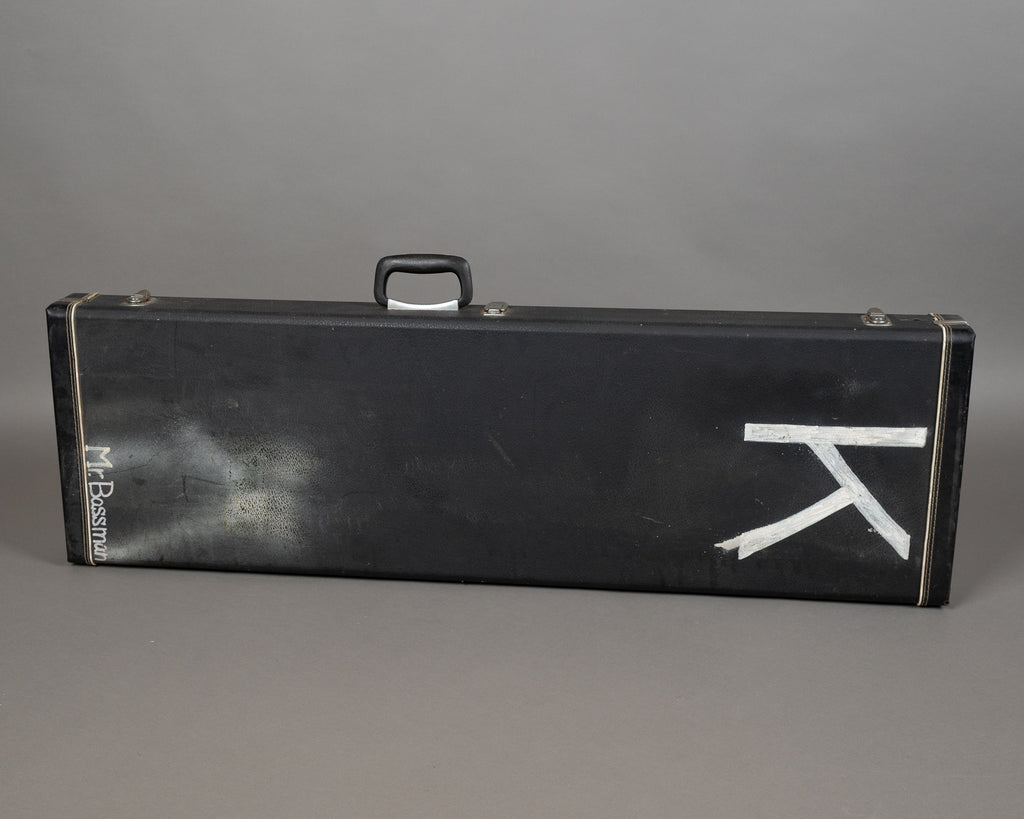 CBS-era Jazz with a maple neck with blocks and binding. Pickups date to 1975, pots to 1975/76. Neck plate is an older 402668 (1973) unit that looks to have simply ended up on the bass at assembly rather than being a later swap. For what its worth the body is quite lightweight so could be of a similar era to the neck plate. Badass bridge fitted. Yes, the finish is absolutely cooked, worn through and melted in a way only a late-CBS workhorse can get. It's had a million cigarettes. Loud, lived-in and anything but precious. Freshly serviced and strung with EXL160s. Includes a hardcase, that says 'Mr Bassman' on it.
