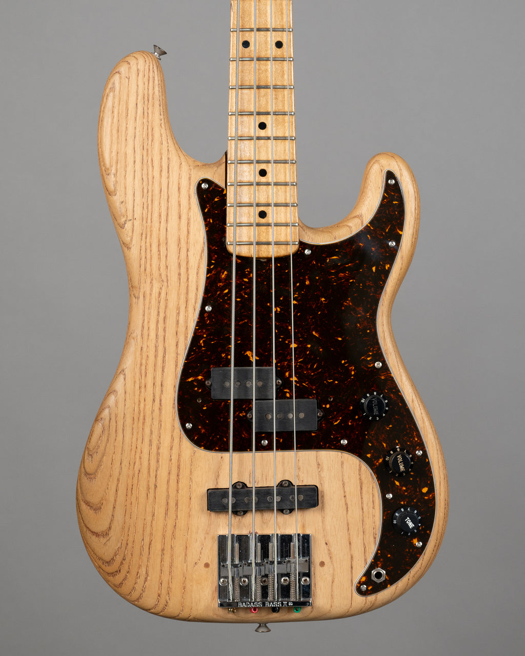The pickguard has been replaced with a tortoiseshell guard and an extra control added, now wired as 2x volume and 1x tone using Japanese-made pots. A Badass bridge has also been fitted. Very much a player-grade Precision with a classic mod to make the instrument super versatile.
