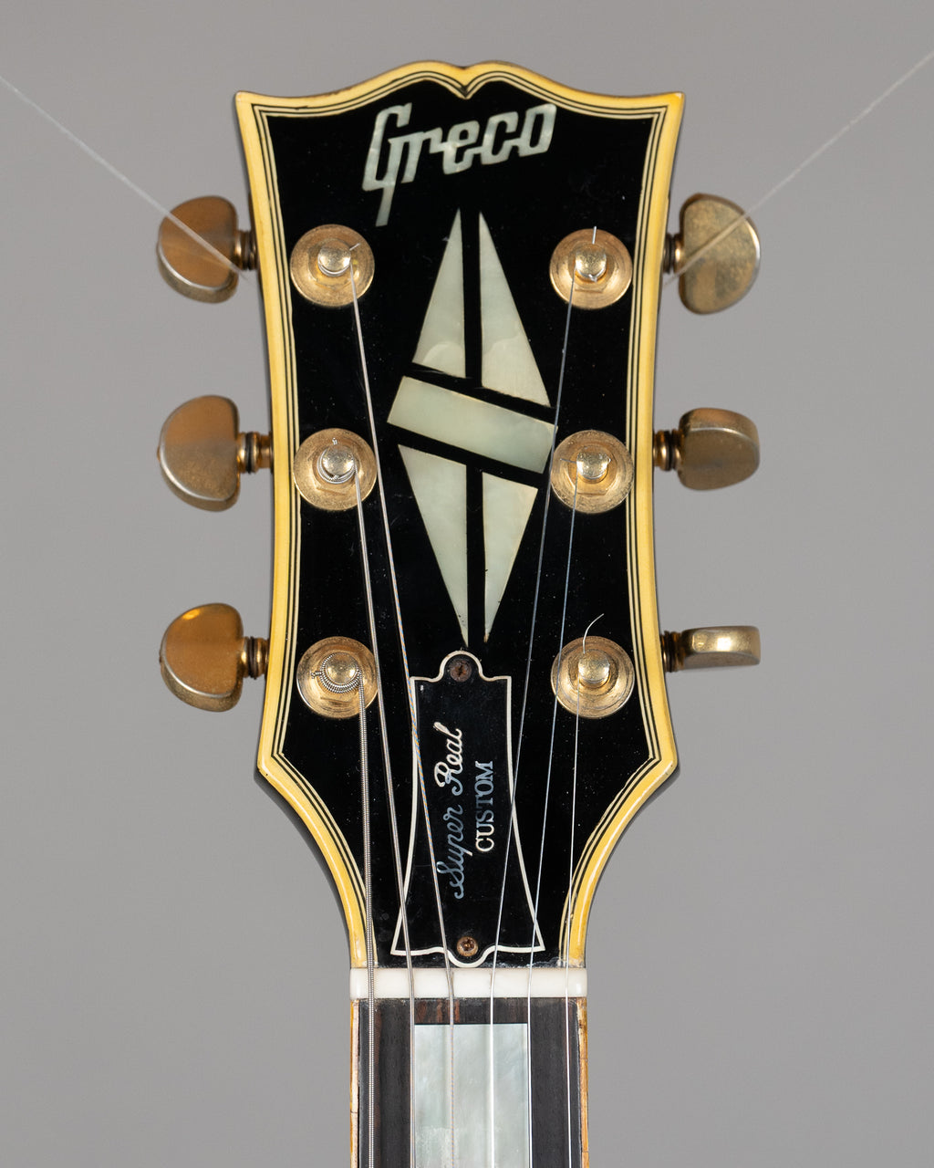 Tip top of the pile when it comes to Japanese lawsuit guitars. Crushingly good Les Paul Custom, open book headstock, original H-3000 pickups, open book headstock, you can see exactly Big G got their undies in a twist about them. At 4.7kg you know it's a great chunk of 'hog. Guitar has had a professional headstock repair, you need to go searching for it to see it. Come and look for yourself, do riffs. Serial 787502 4.7kg “Heavy is good, heavy is reliable. If it doesn't work you can always hit them with it.” - Boris the Blade
