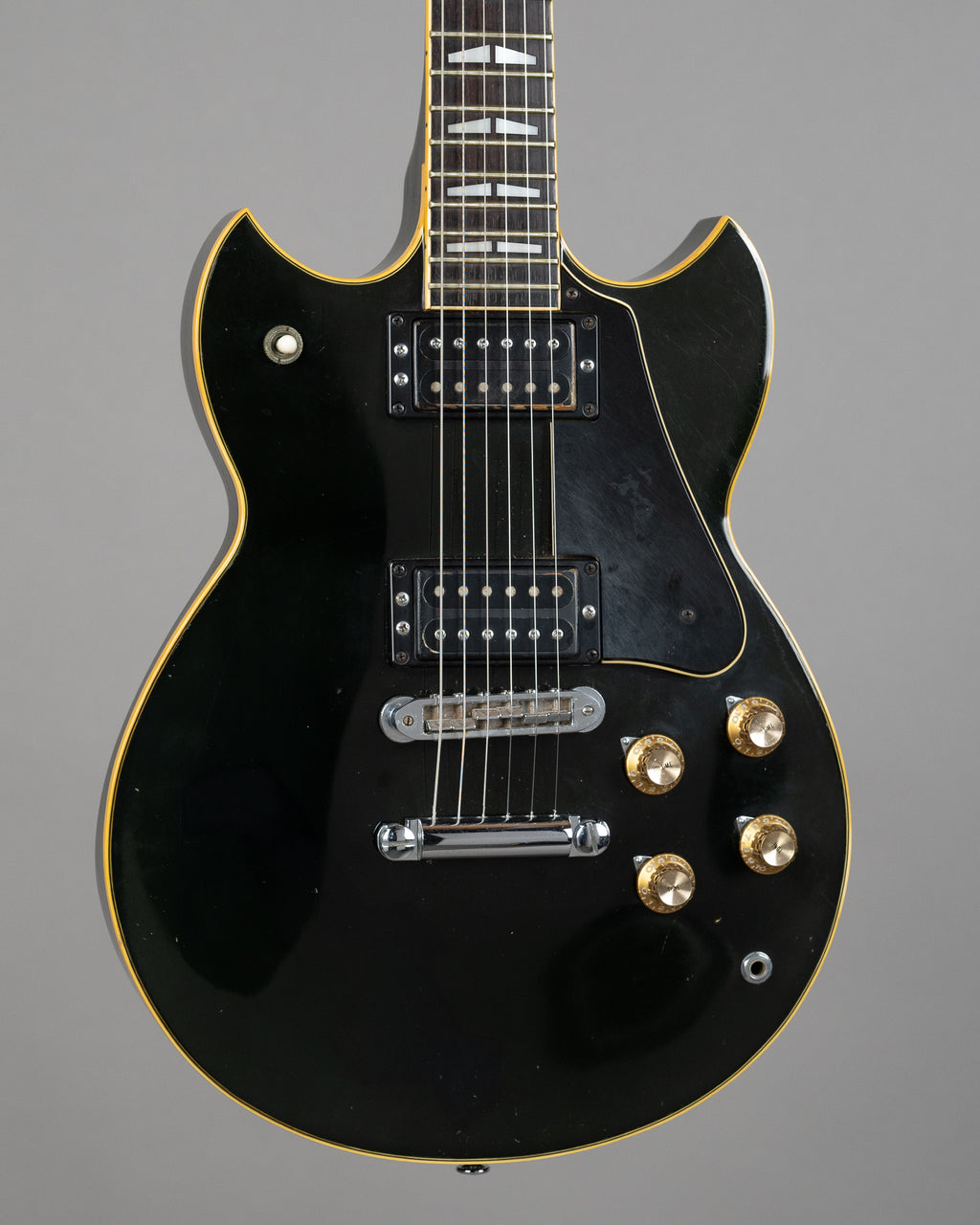 Oh golly gosh yes. Black 70s Yamaha SG-500. It doesn't get any better than this..really. Killer sounding guitar, not too heavy.. Few scuffs with the minor scuffs with the law but no breaks or anything crazy. Minor pitting on the frets..Stock tuners, stock pickups..I ruv it..ruv it. Made in Japan. Comes with cute yellow lined steel belted case..to protect it...#002422 Weight: 4kgs