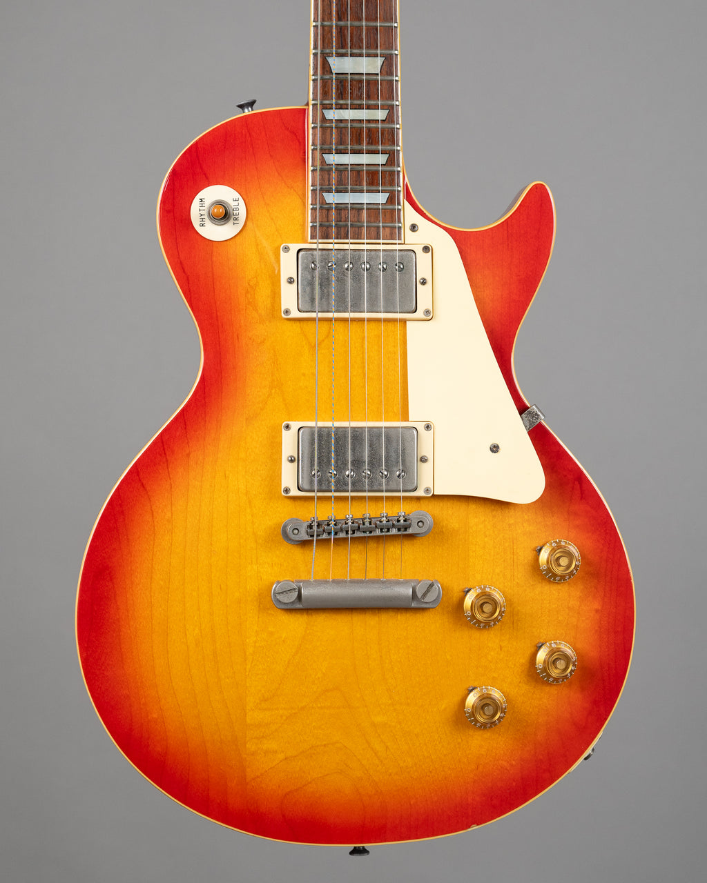 Built in 1980 during the Super Real period. Solid maple cap over a dense mahogany back, plain three-piece top, nickel hardware throughout. A straightforward, well-made Japanese Les Paul from the era that made these genuinely respected.