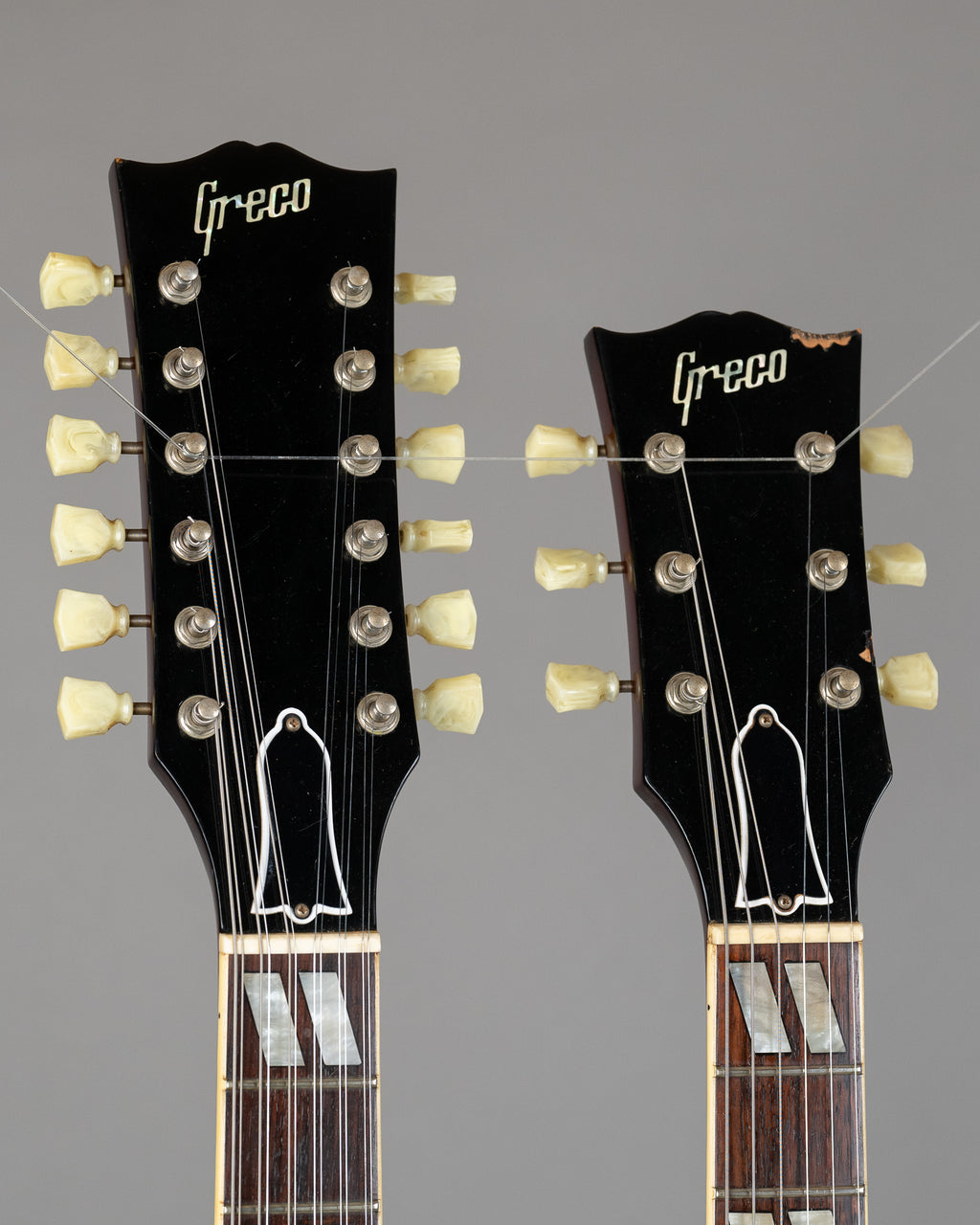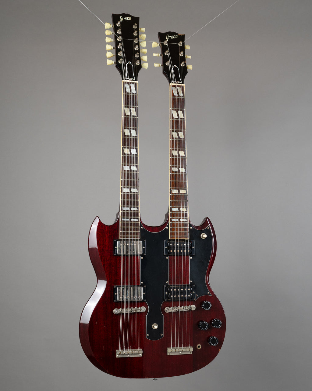 Rare early 80s Greco SGW-1300 double neck from a definite golden era of Japanese guitar building (and bootlegging!). These double necks don’t turn up often and this '80 model sits right at the point where Greco were firing on all cylinders. Surprisingly lightweight for a double neck at 4.85kg and genuinely playable. Both the 6 and the 12 sound great! Big visual impact, serious craftsmanship and a proper slice of vintage Japan that has become increasingly hard to find. Yes, includes the original hard case (phew)