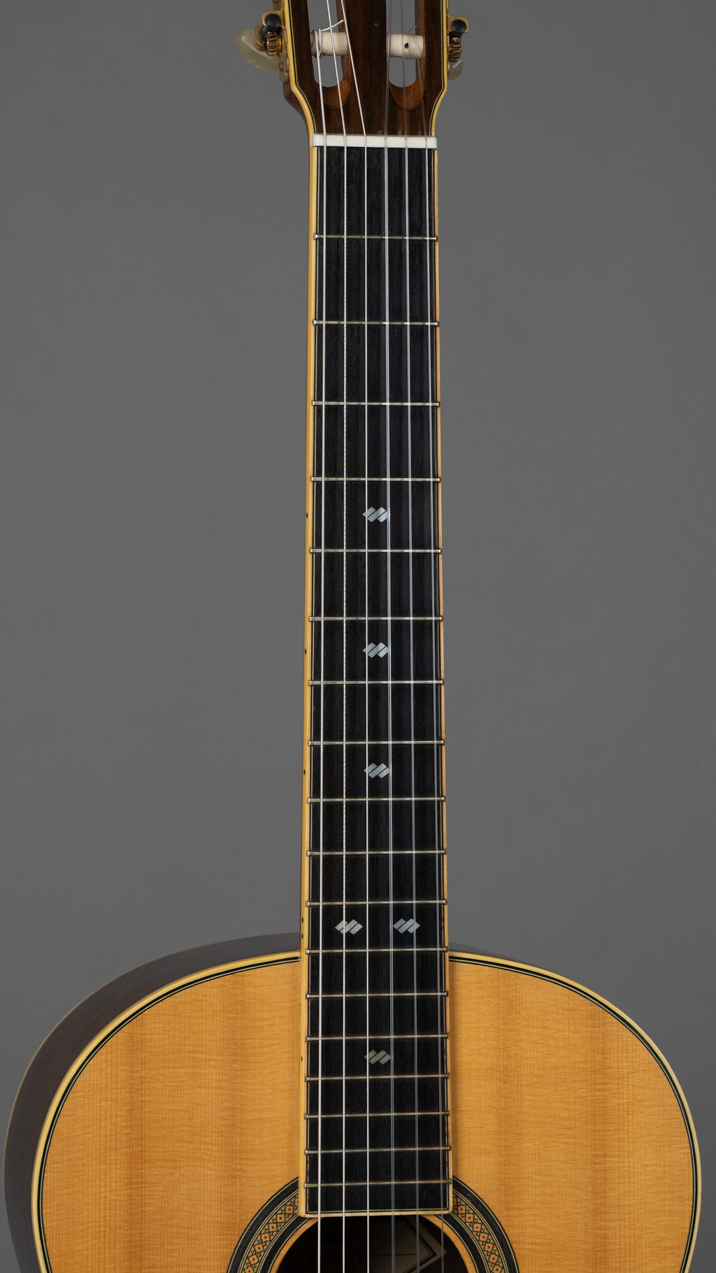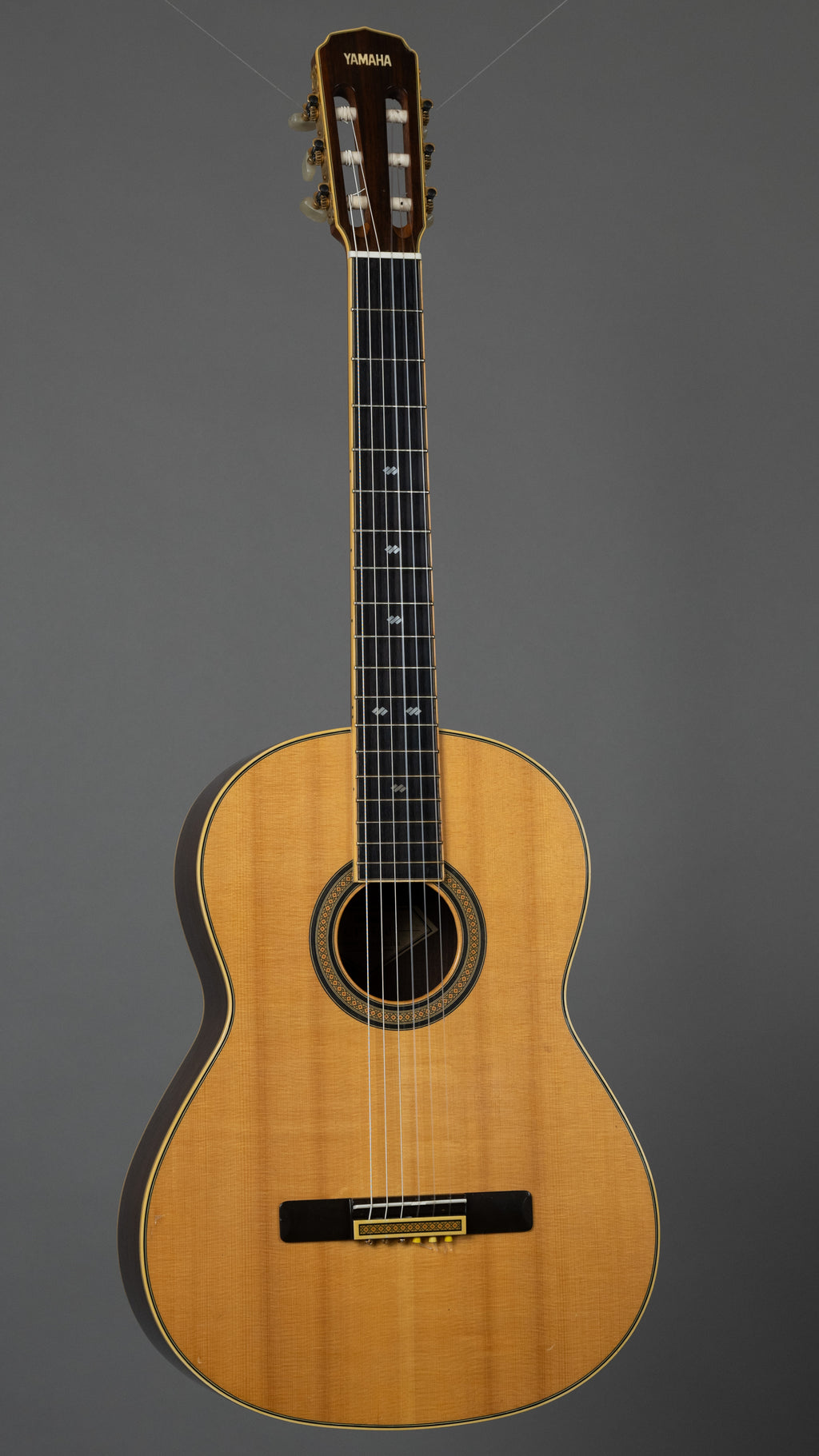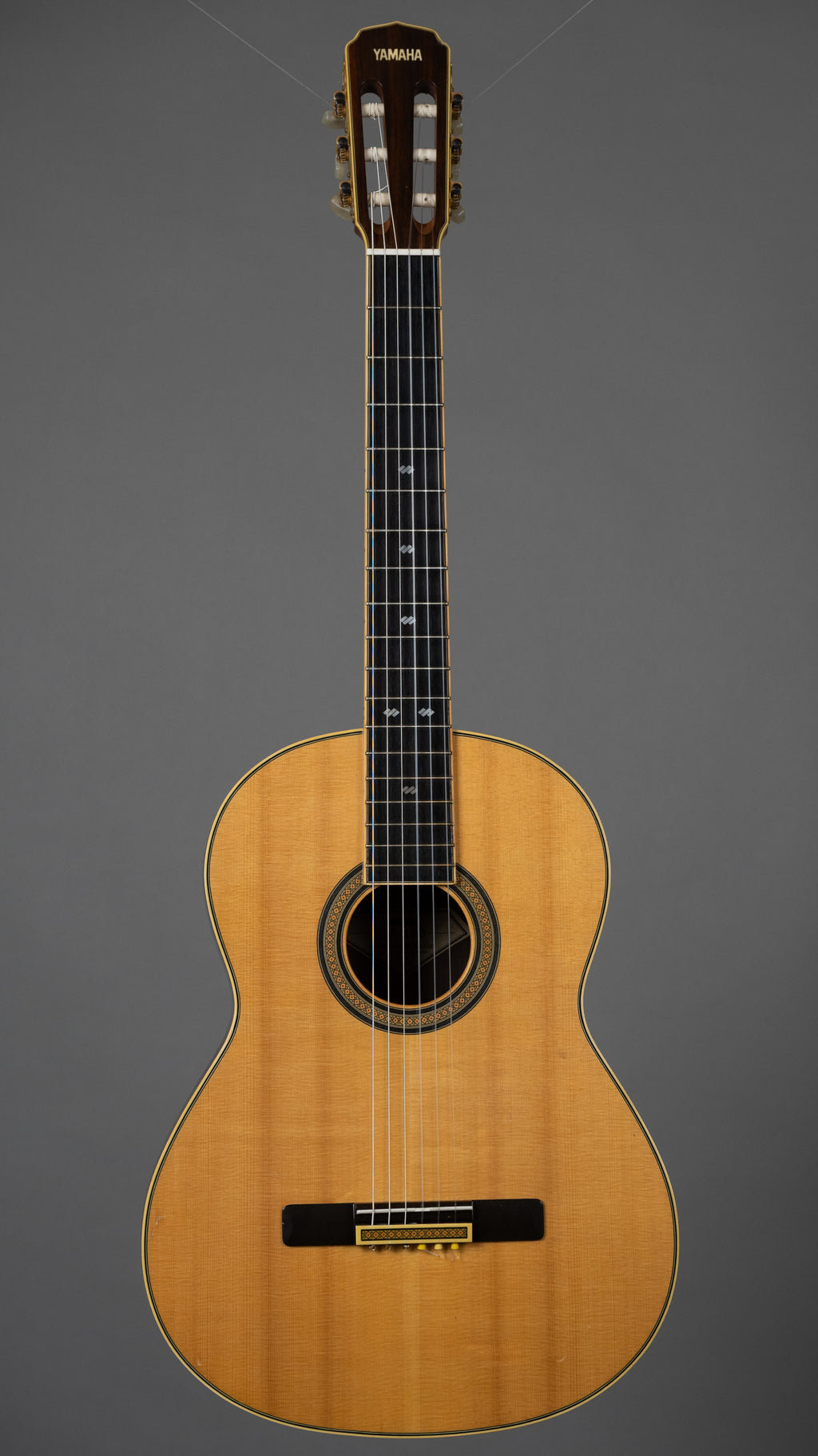 With a solid Spruce top and 'double plate' rosewood back and sides, this Nippon Gakki Yamaha is a gun of a thing. Beautiful build quality, binding on neck. Sounds great, looks great, is great. Medium action at the moment, could come down if you so desired. Very nice condition all over. Ole.