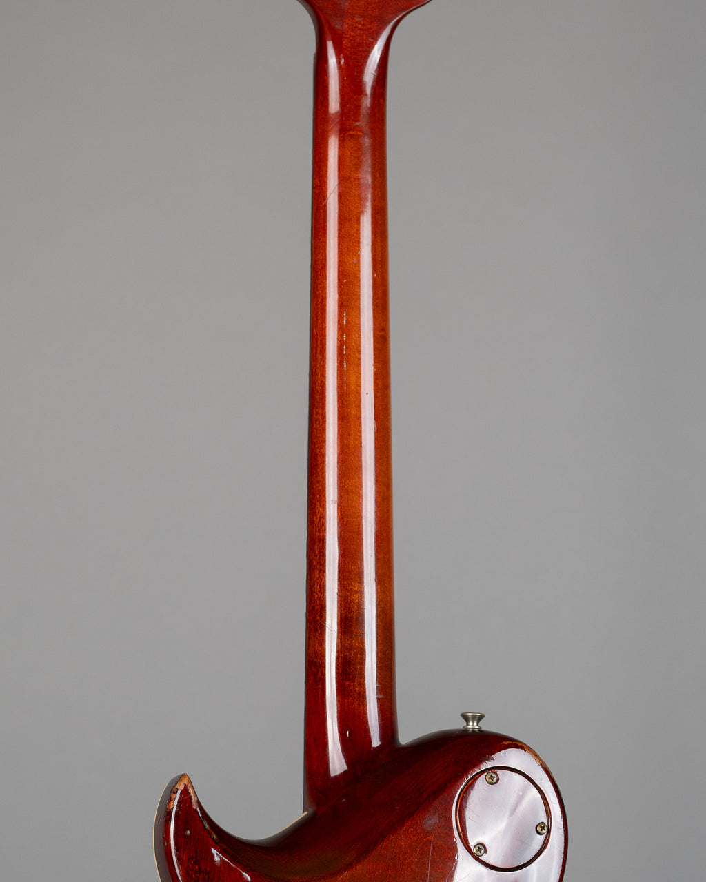 The Les Paul you have when you aren't having Les Pauls. Neck Pickup stamped 75, believe it's the original Classic Power. Bridge is a Super D just the way Lemmy intended. Mahogony body with a carved maple top AND back. Ebony board with cool curved clouds, the top has some wild crazing going on, really gives off an old leather book vibe, some good honest wear all over the guitar but nothing outa the ordinary. The frets are in dire need of a good tidy up, and this has been taken into account when pricing. SN 1120464 Weight: 3.9kgs
