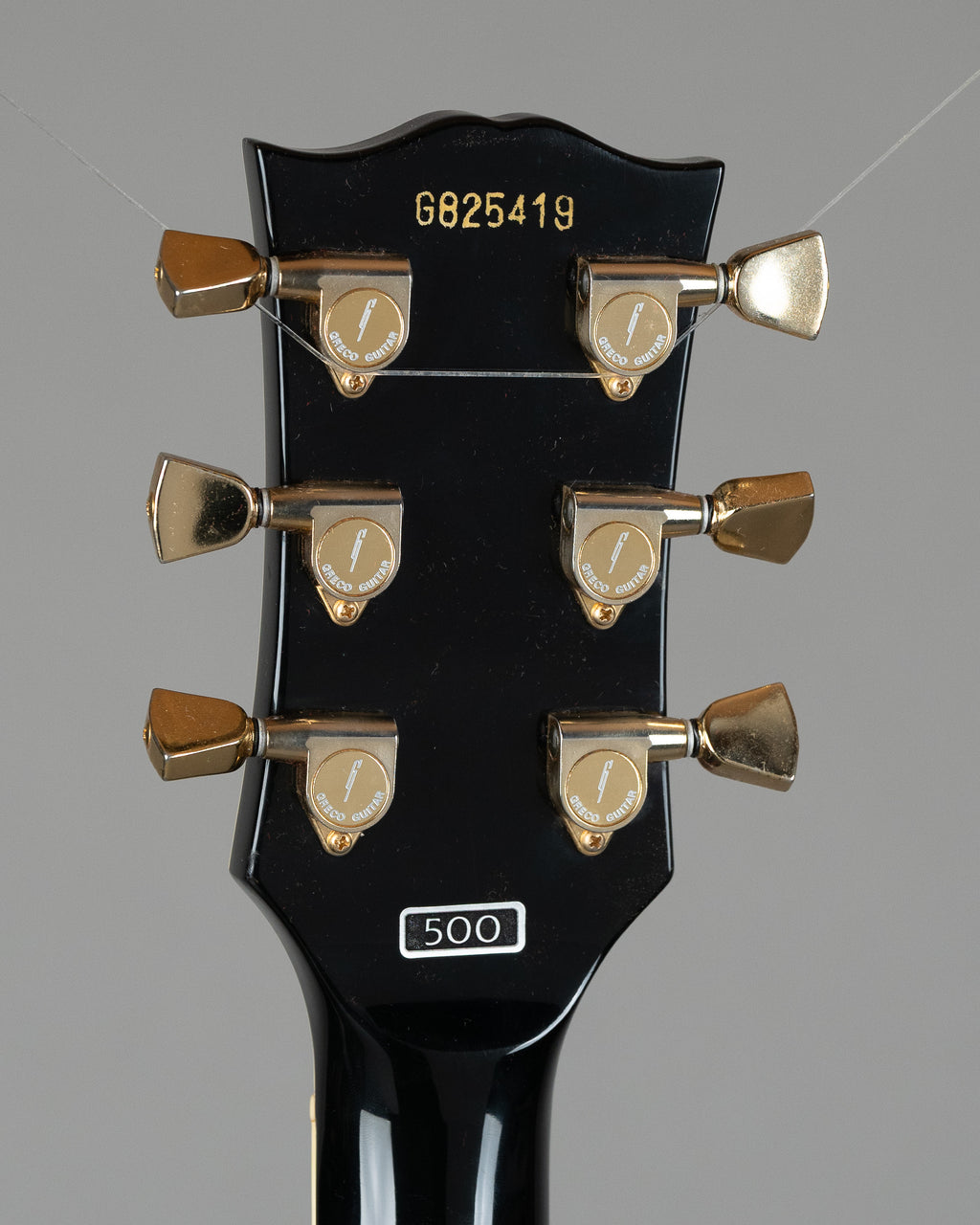 Carved top maple / mahogany / mahogany construction, maxon pickups, etc. Even weighs the right amount (close to 5kg) so you know it's... real. Super(b).