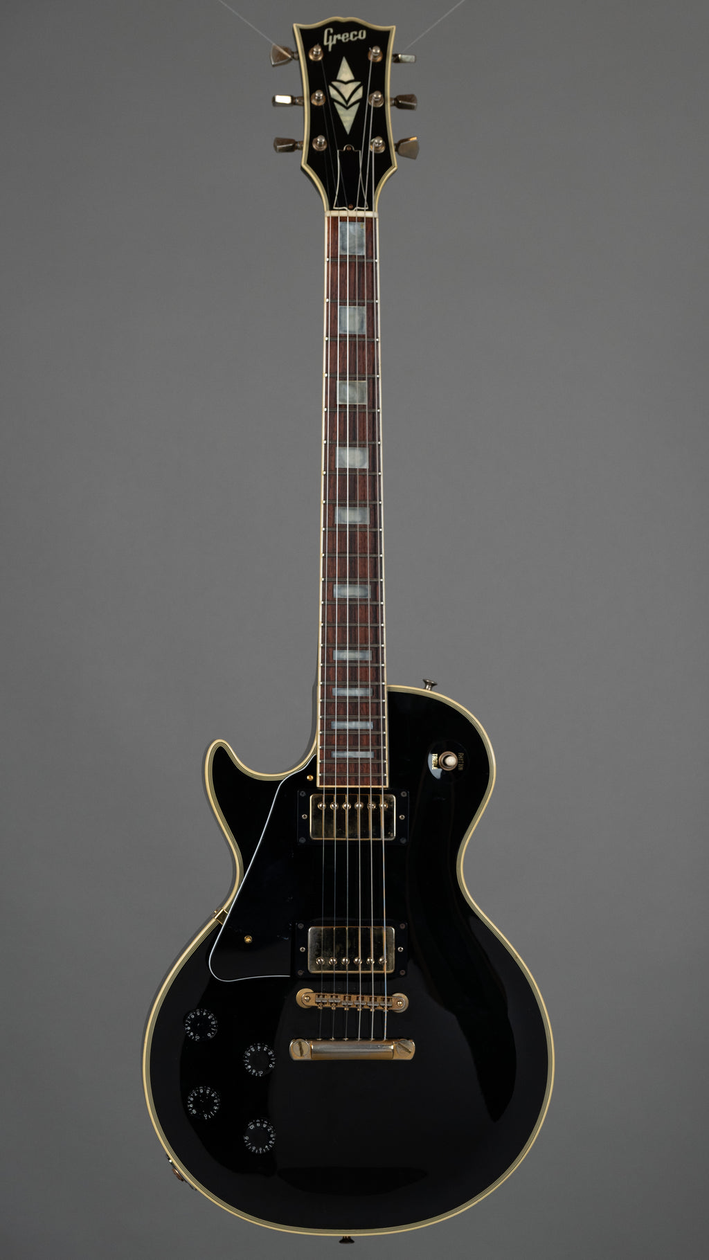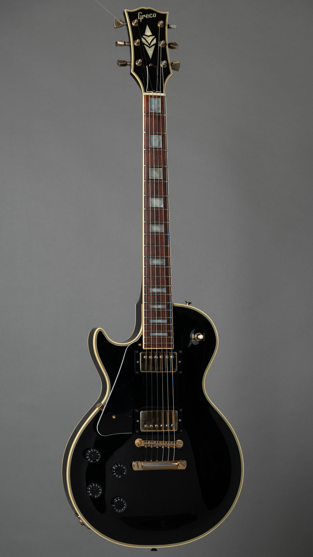 Tough looking and sounding, lefty Greco LP. Screamin' (for Vengeance) pickups, Gold hardware, good condition...