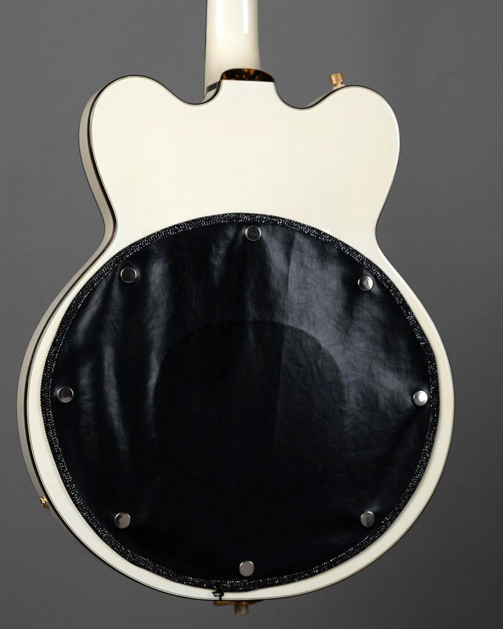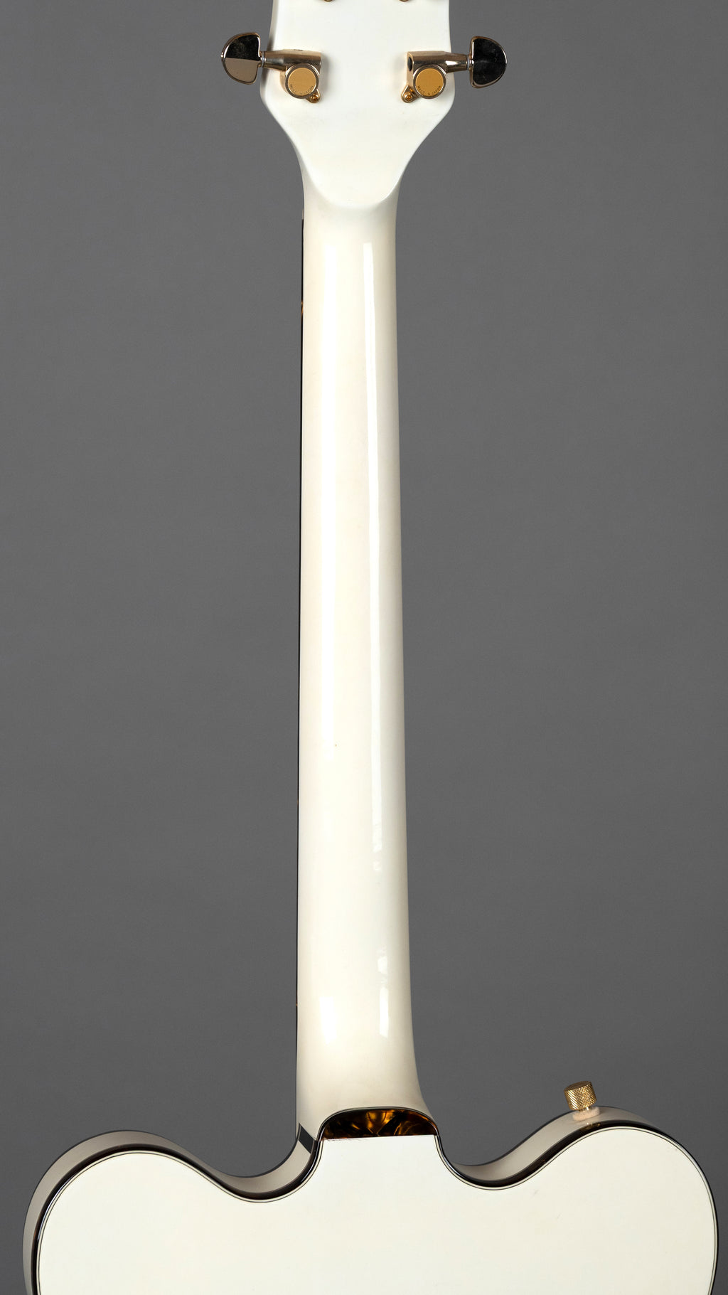 While heavily influenced by the mid-to-late 1960s aesthetics of the Gretsch White Falcon there are a few things that make this 'copy' unique. Spec'd out to suit the Japanese market, you've got a super fast slim neck (think 1961 Gibson slim taper) and a slightly shorted scale length 311mm with 21 frets, with the Gretsch being 324mm with 22 frets.