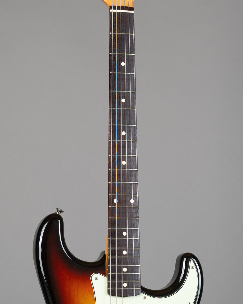 Neat mid-90s MIJ Strat with that classic sunburst and a set of USA Texas Specials giving it plenty of bite. Plays easy with a dark rosewood board and a comfy, familiar ’60s carve. Clean overall with just a few tiny knocks on the body and a bigger love tap on the headstock that’s all shown in the photos. Solid, reliable mid-period Japan build that feels right in the hands and looks the part too.