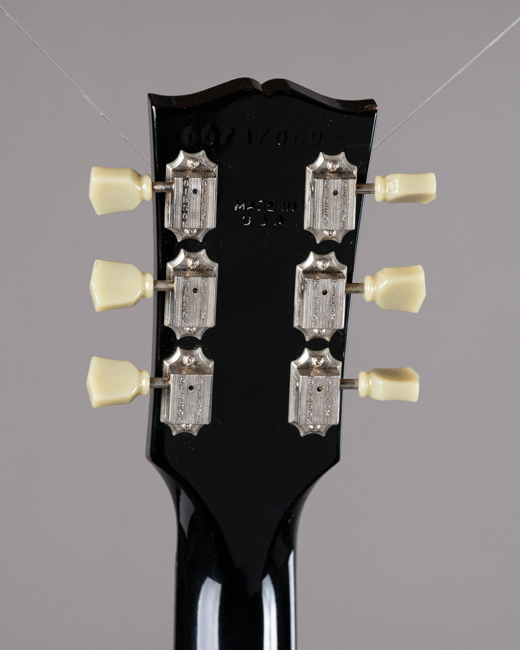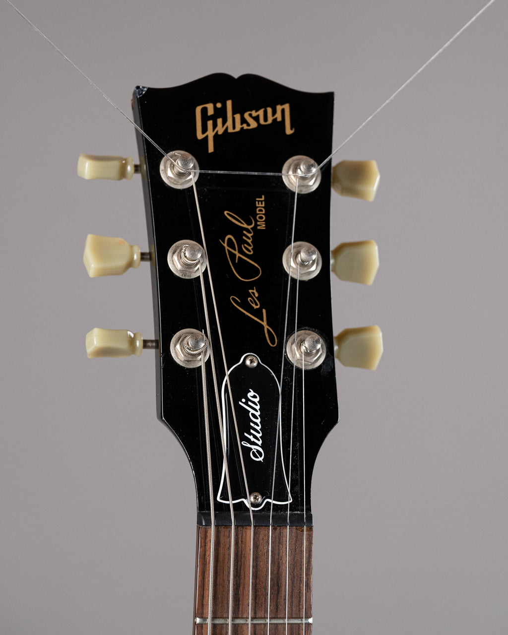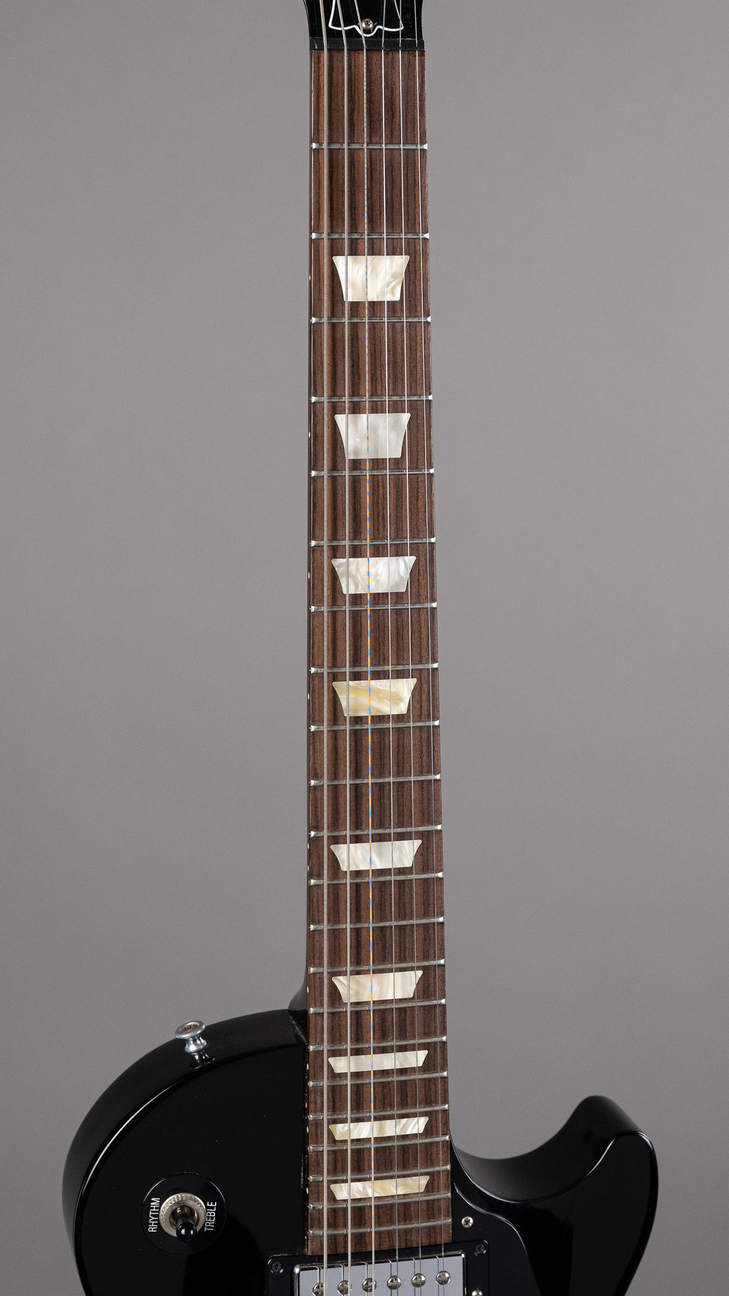 No-nonsense ‘90s USA Studio in gloss black with all the meat and none of the frills. Classic Les Paul tone with dual humbuckers, trapezoid inlays, and Kluson Deluxe tuners. A proper player’s guitar that does exactly what it says on the tin. Serial 90795323. 4.25kg.