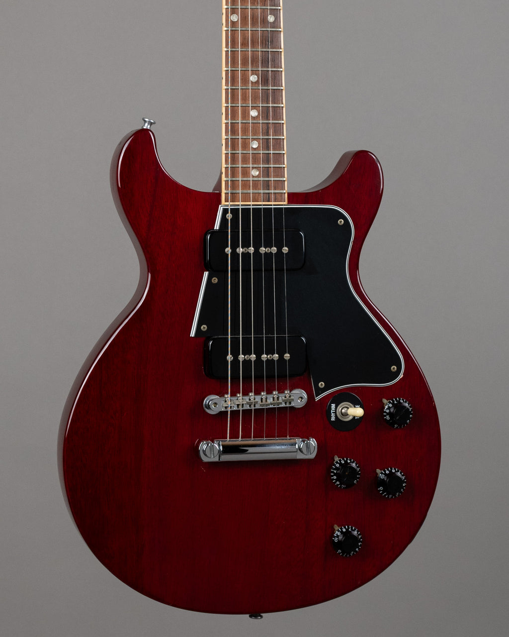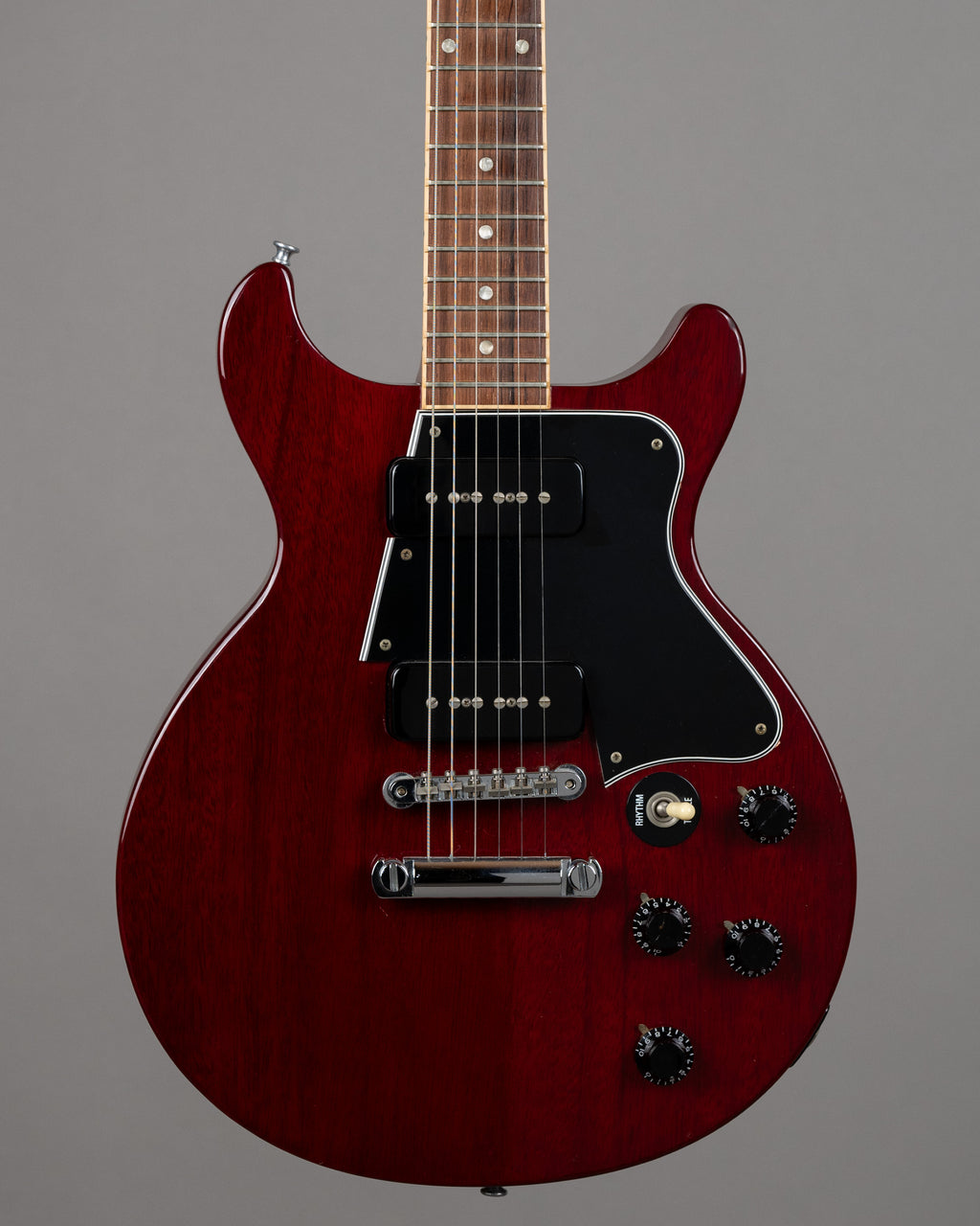 A very cherry, and super cherry Les Paul Special from 1996. Superb thing with the late 80s/90s tuneomatic and stop tail, which, though not traditional, makes it easy to get the intonation spot on. Super clean, bar light surface scratches, and some minor stand and strap rash. Frets are good. Totally underated model, from a particularly good period of time. Comes with a new brown vintage style hardshell case. Made in the USA SN: 91556530 Weight: 3.5kgs