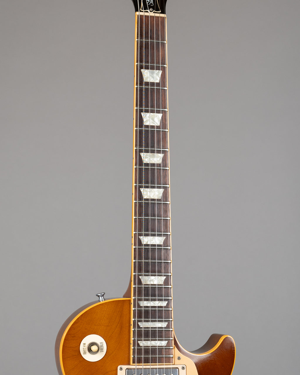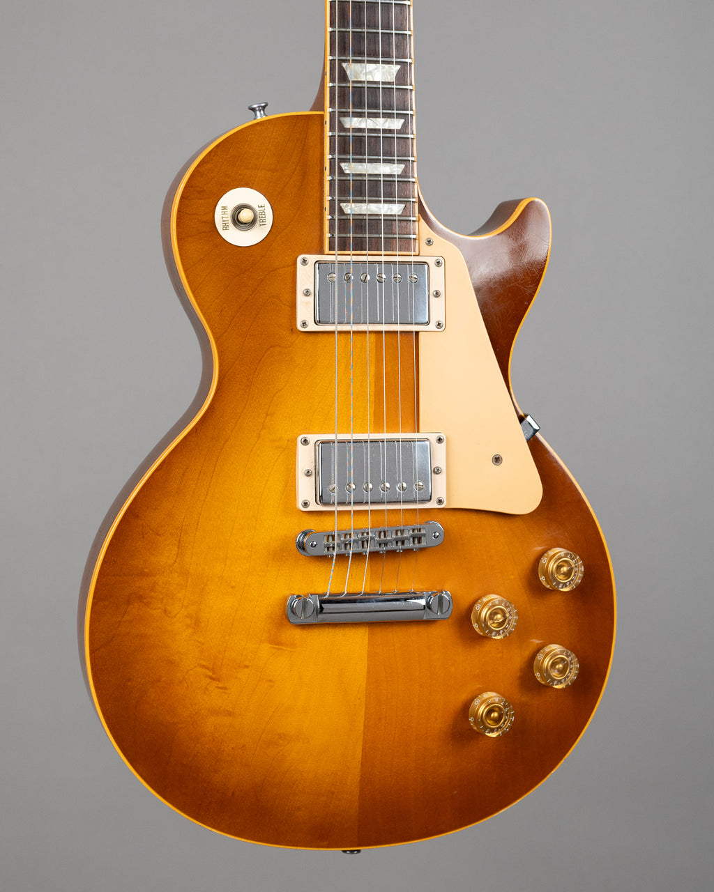 Nice weight, best finish, 96 LP. Aside from a small, well repaired headstock break, this is in good nick...with just enough surface scratches to take the shine off its shoes so to speak. Frets have loads of life too. Good, honest, rockin' LP, and has the cool original brown Gibbo case too. Made in the USA.