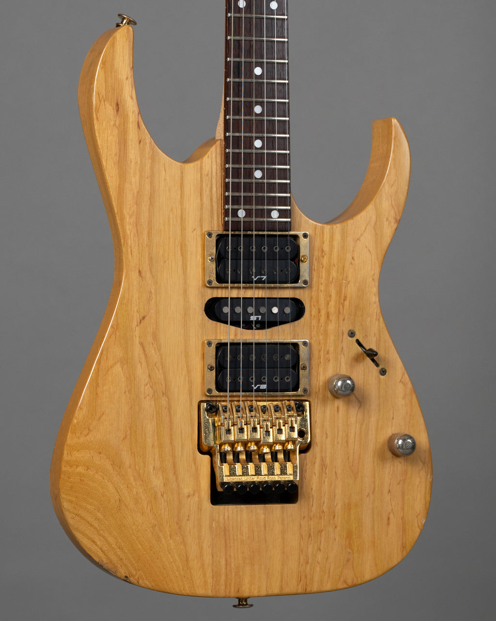 The RG670 features a light ash body, a one-piece maple bolt-on neck with all-access neck joint (AANJ), 24-fret rosewood fingerboard and dot position markers. Loaded with IBZ pickups - a pair of V7 & V8 humbuckers flanking an S1 single-coil, a Lo-Pro Edge double locking tremolo bridge with a locking nut and Gotoh tuning machines. The Wizard profile is absolutely present here, so ponder thy orbs well.