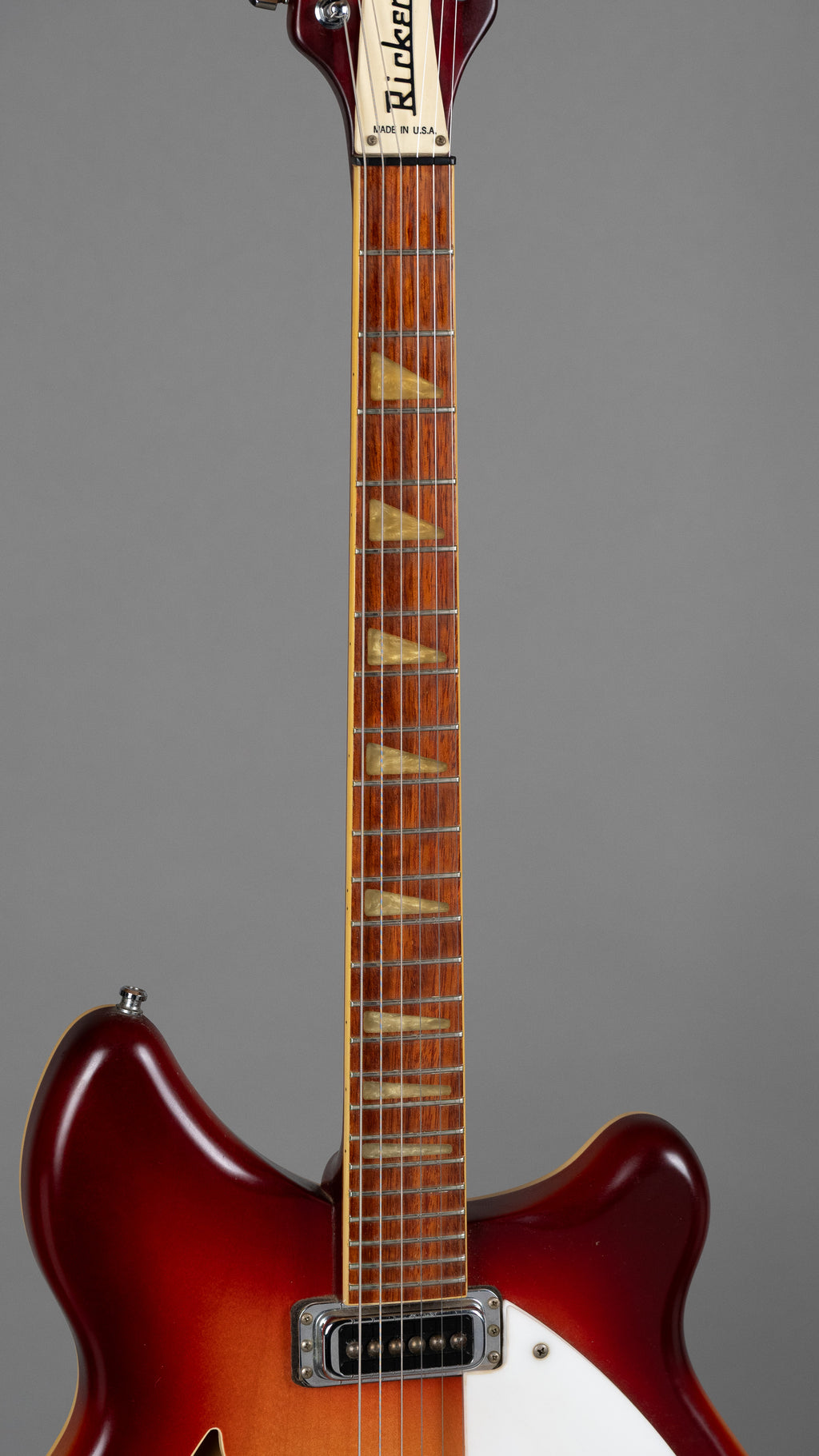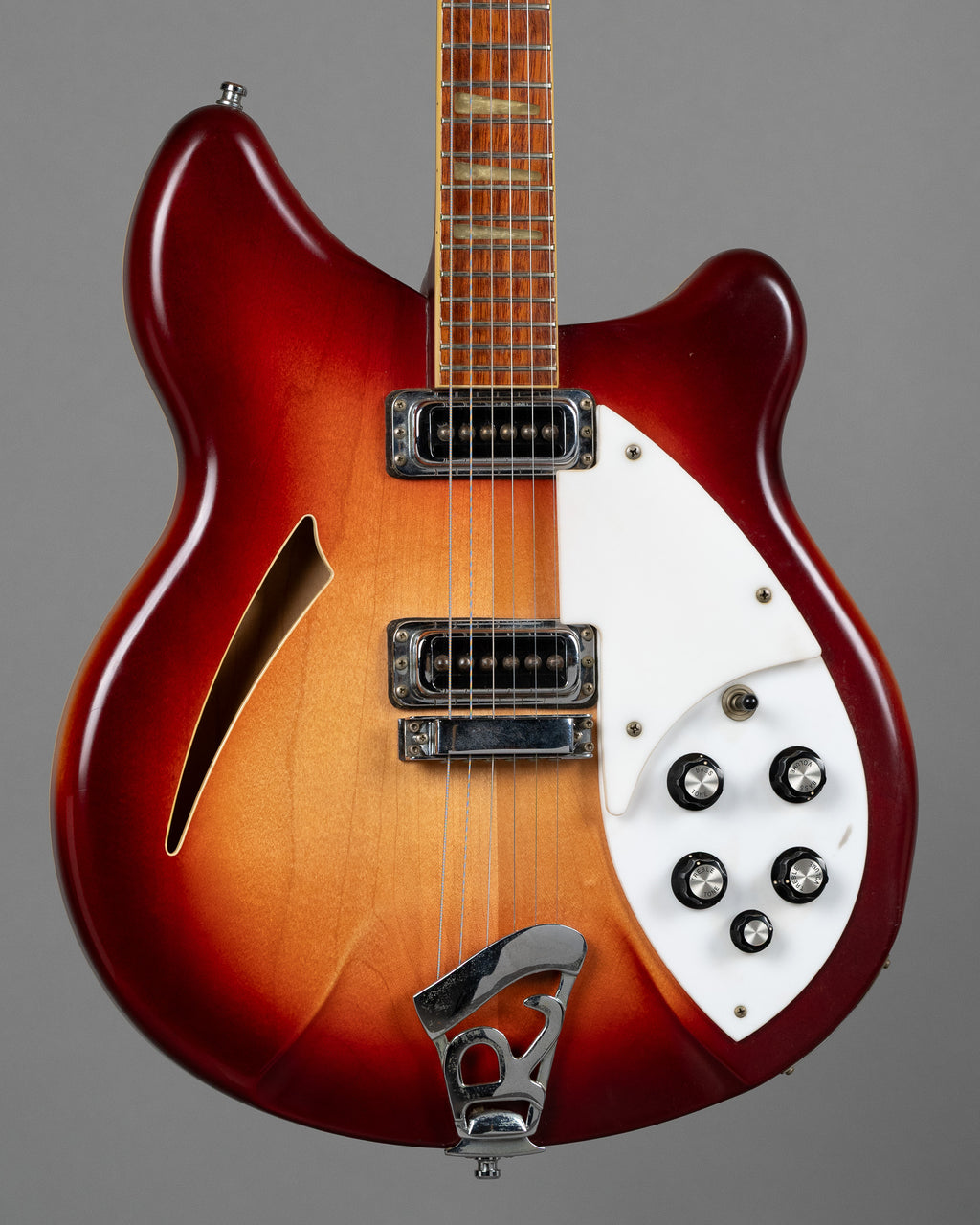 One of the most recognisable silhouettes in the electric guitar world. This 1996 Rickenbacker 360 in Fireglo brings all the chime, jangle and shimmer it promises in your head. Maple body and neck, bound rosewood board with sharkfin inlays, and classic R tailpiece. Original high-gain pickups do that 1980s/1990s RIC thing. Great condition overall with the right amount of playwear to make the instrument feel worn in.
