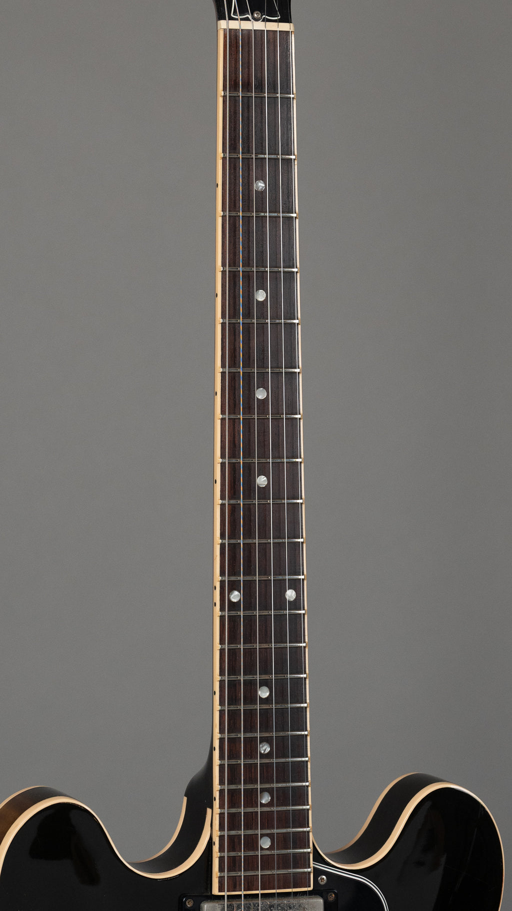 Tidy, and stock... Hardware has tarnished, frets have plenty of life left..and it comes with the original hardshell case. Nickel Grovers, ABR-1, and a great-feeling neck with a dark board. Solid maple centre-block holding up the house and the stirking figure bringing it down when you pull it out of the case.