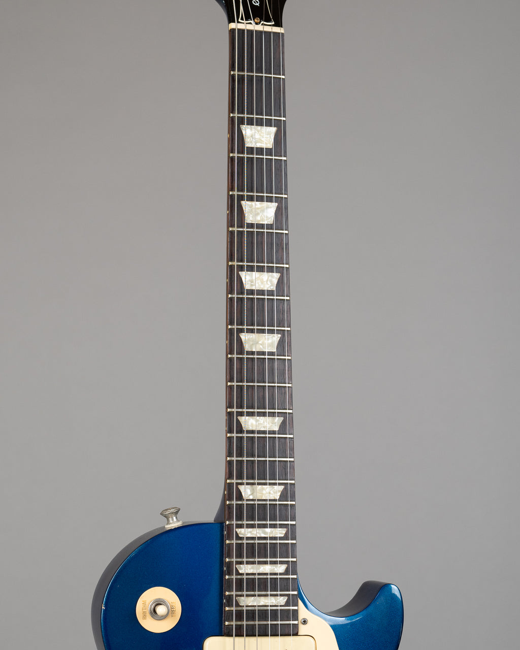 Limited edition, made for a couple of years, Gibson Les Paul Gem Studio. The best thing about these was the P90 pickups..which were kinda hard to find in Gibbos in the late 90s. This one has had the stock Gibson P90 pickups swapped out for Bartolini Pickups, which not only look cool...but sound bloody great too. It's also had the machineheads changed to silver Gibson Deluxe tuners (rather than gold). Anyways, a punchy, cool looking thing...in a great colour...with plenty of fret life left! SN 90217454 Weight: 3.80kgs