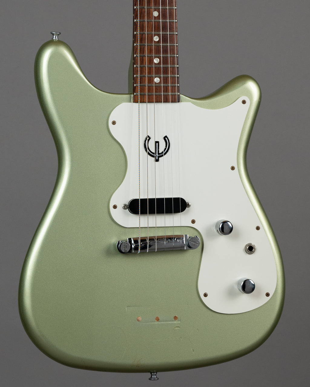 Knobs have been changed to Telecaster type, couple of finish cracks, plenty of fret life, and quite possibly the happiest colour to ever grace a guitar, Peppermint Green Metallic.