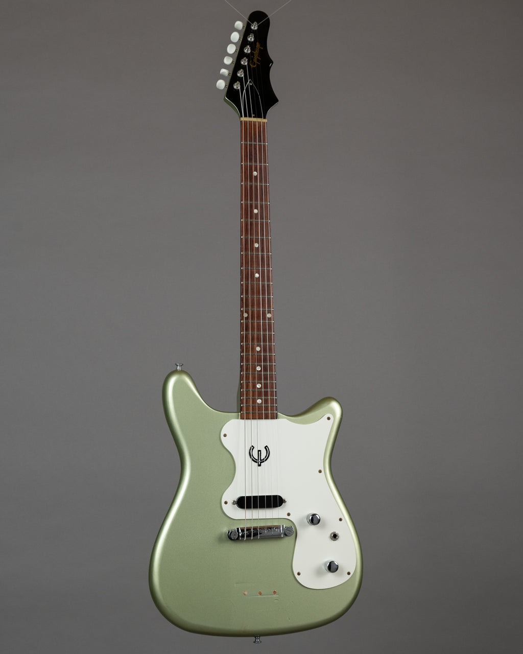 Bang on Epiphone Olympic Reissue, made in Japan in 1999. Made in very low quantities and seldom seen, even domestically in Japan. I bet you didn't even know they re-issued it in 99 at all. Well, now you do, and coincidentally you can exercise your free will to buy the very instrument about which you've just learned.