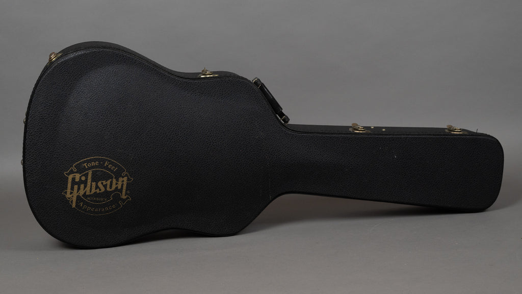 A absolute weapon of an acoustic. Deluxe version of the J-45. Inlays, pickguard…yep blinged out of it's brain. Aside from the aesthetic differences, between this and a 45, this is a great sounding acoustic..skinny neck, a joy to play. Not mint, not thrashed, just an honest second hand Gibbo, that looks like you mean business when you strap it on. Should give you years of great service. Comes with the original case, and made, of course, in the USA.  #01431063