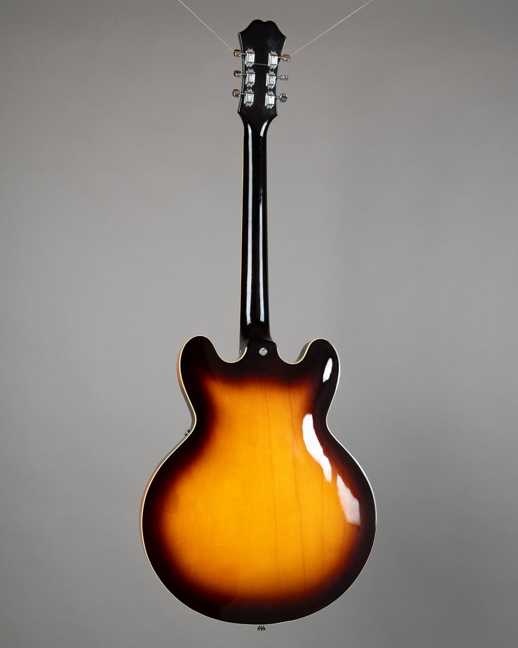 2002 Epiphone Casino in sunburst, built at the Peerless factory in Korea. Light play wear throughout but very tidy overall, with that classic fully-hollow chime and bite these early-2000s Peerless examples are known for. Comfortable neck, lively unplugged tone and a really open, expressive feel when amplified. A great player and a great era for Casinos. Bridge pickup tone control pot is a little tight but fully functional. Anyway Casino's. They be a good thing. Join the cult (revolution).