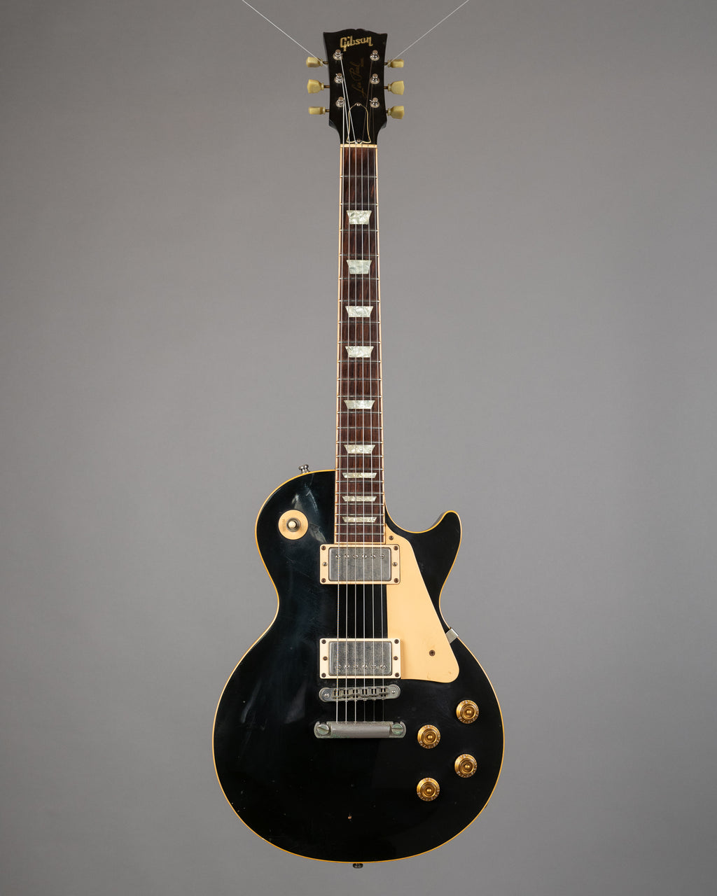 Nasty, 'orrible Black Standard from the era just after the Millenium bug tried to derail the world. Some might say, 'this guitar looks beat up' …I say, 'Les Pauls should never look too pretty' Everything plays and works as it should, however this guitar has a well repaired crack to the neck near the lower frets and is priced accordingly. I think it's a lovely Les Paul..and looks like it should have a name...but I'll leave that decision up to the new owner. Frets are good, it's Ebony, whatcha waiting for. Made in the USA#01913609 Weight: 4.6kg