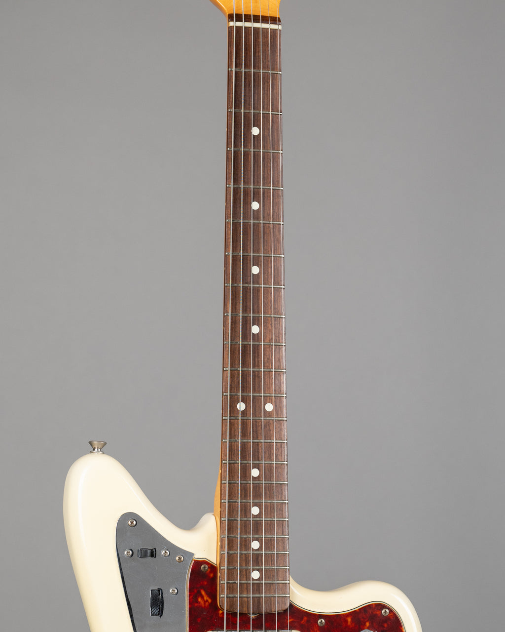 Maple neck with 7.25" rosewood board, 24" scale length, Alder body finished in Olympic White.