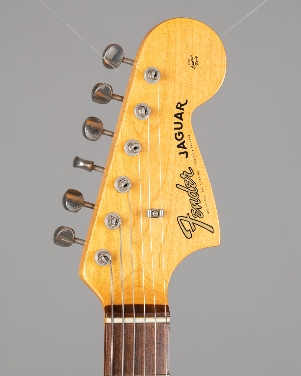Fender's American Vintage '62 Jaguar has all the distinctive Jaguar features, including a trio of sliding pickup selector switches, upper bout rotary volume wheels, chrome hardware and tremolo lock. The unusual Fender mute is a built-in but removable string-damping device designed for surf music.