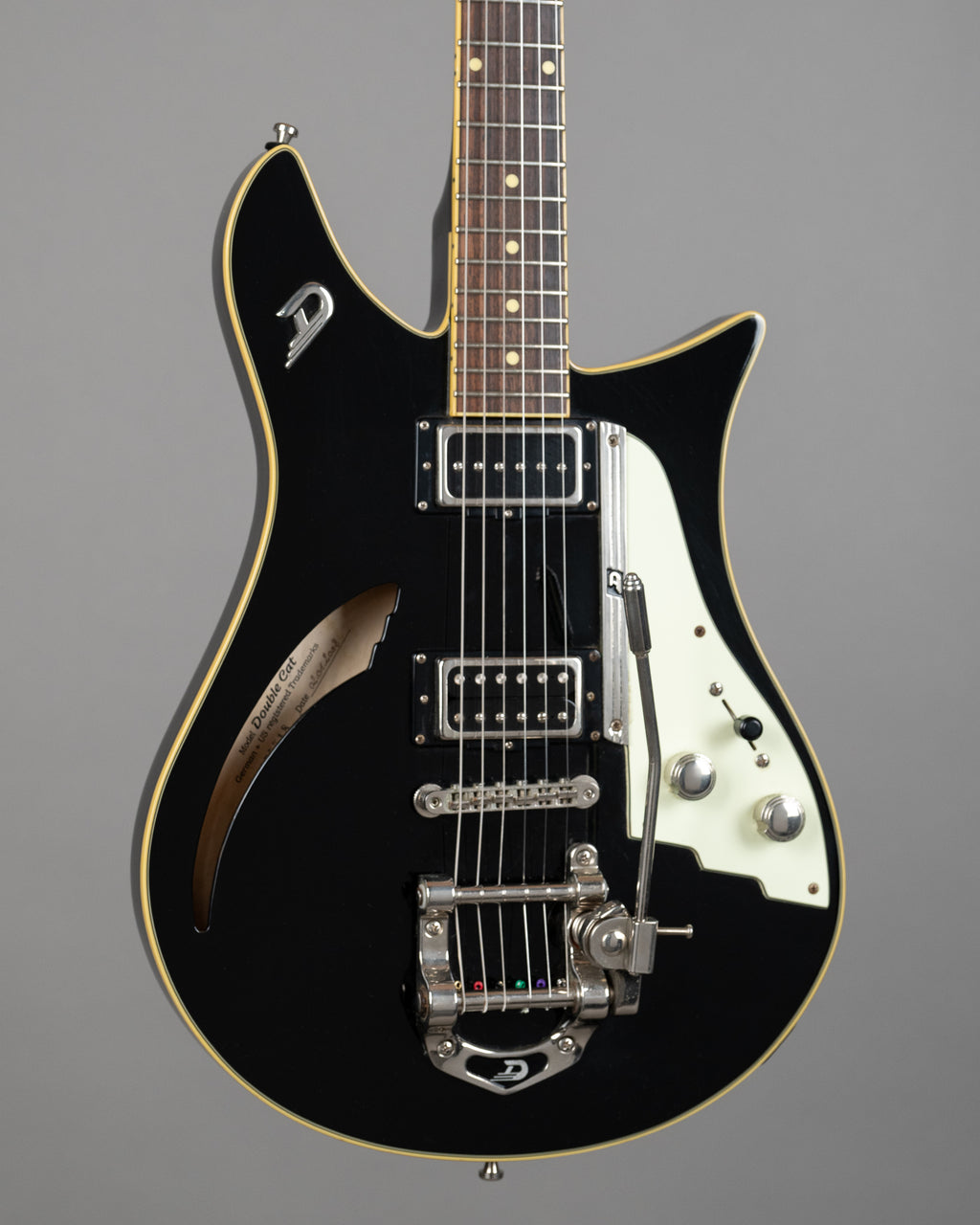 A really strong example of the Double Cat from the late-2000s. Quite underated instruments built to a darn high quality. Semi-hollow construction with some pretty neat aesthetic touches. Great sounding guitar, it sits comfortably between chime and grind without tipping too far in either direction without sounding like anything else.