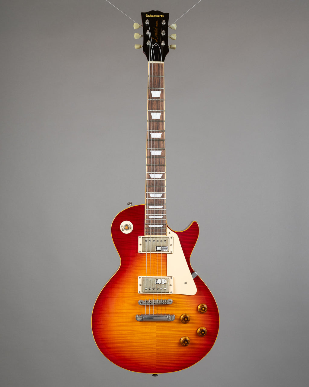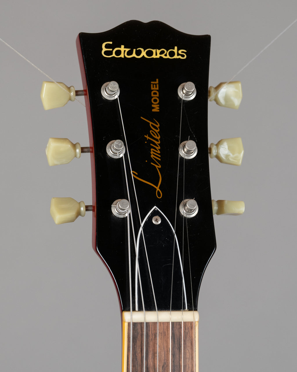 One of the good Edwards models. Nitro lacquer top coats gives this thing a proper feel, and a very musical voice. This one still has the Seymour Duncan stickers on the pickupsBell-like, clear and open sounding, with great note separation and a really balanced response across the neck. These sit in a sweet spot where they feel refined but not sterile. Very good guitar for the dough.