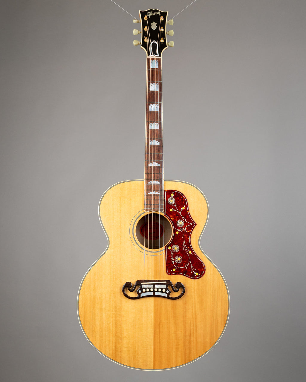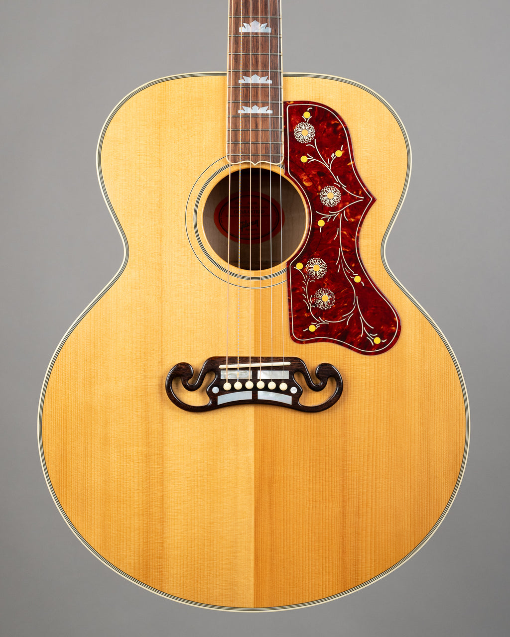A stunning SJ-200 with the good stuff going on. Old enough to feel lived in. Uncommon VOS finish gives it that gentle aged glow, and the maple on this one is seriously flamed. Big, open voice with that classic SJ-200 sweep. While many consider a 200 as being a big bold strummer, the focussed maple / spruce pairing creates a voice exceptionally well suited for fingerstyle. Townes Van Zandt famously played a late era SJ-200 doing exactly that. We don't see many of these come through the door, arguably because, for most people these instruments become lifers. Fresh setup with a traditional feel at the 12th fret (2.25 bass, 2mm treble) and plays clean across the board. Come find out why these things are nicknamed the 'King of the Flattops'.