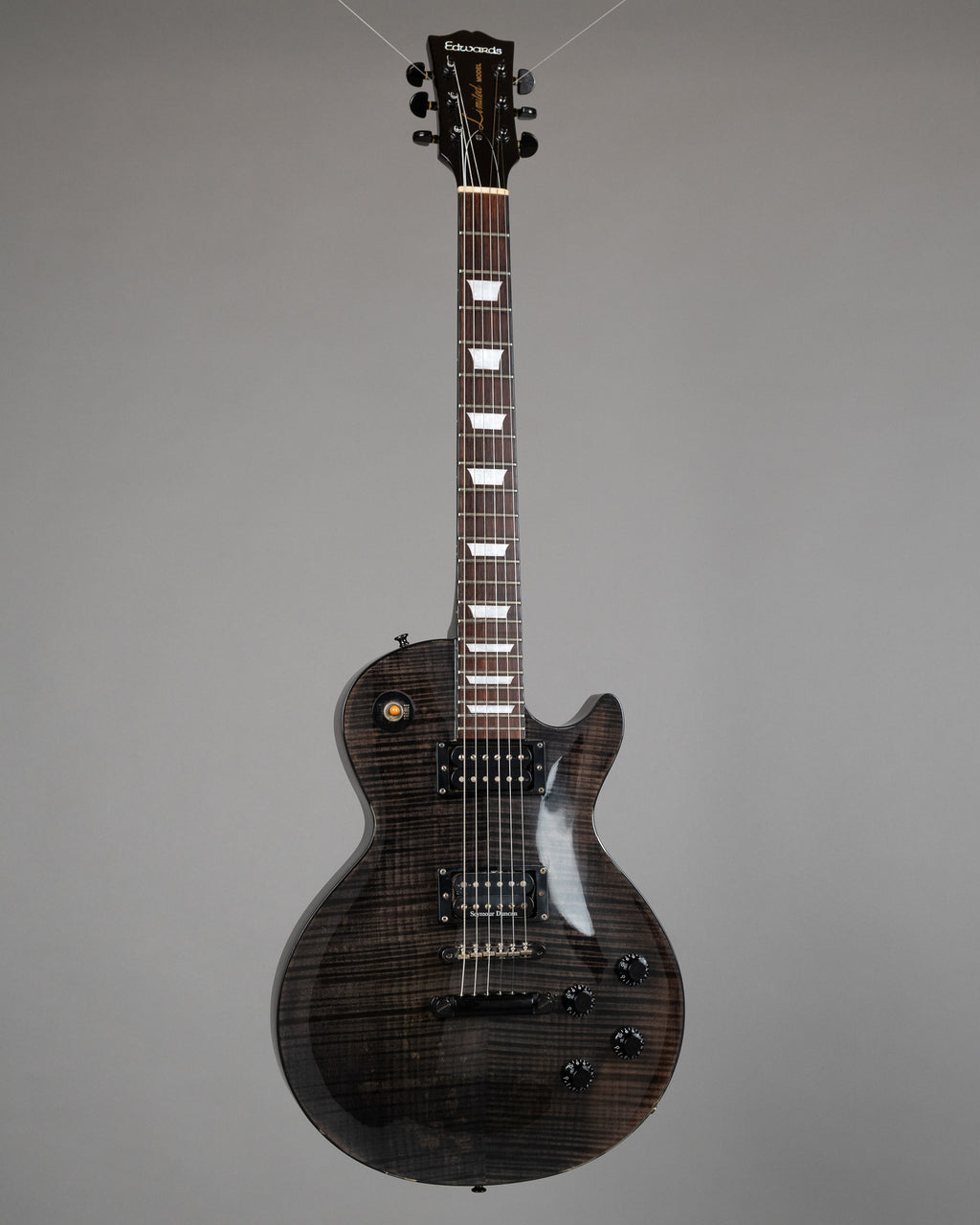 Edwards 'Limited Model' Blackhawk (Japan, Transparent Black Flame) Uncommon ESP made Edwards. Black binding. No pickguard, flamed maple cap with a trans black finish. Blacked out hardware. Seymour duncan bridge pickup. Big fat 50's neck (super cool). Freshly serviced. Made in Japan. No serial. Weight 4.8kg