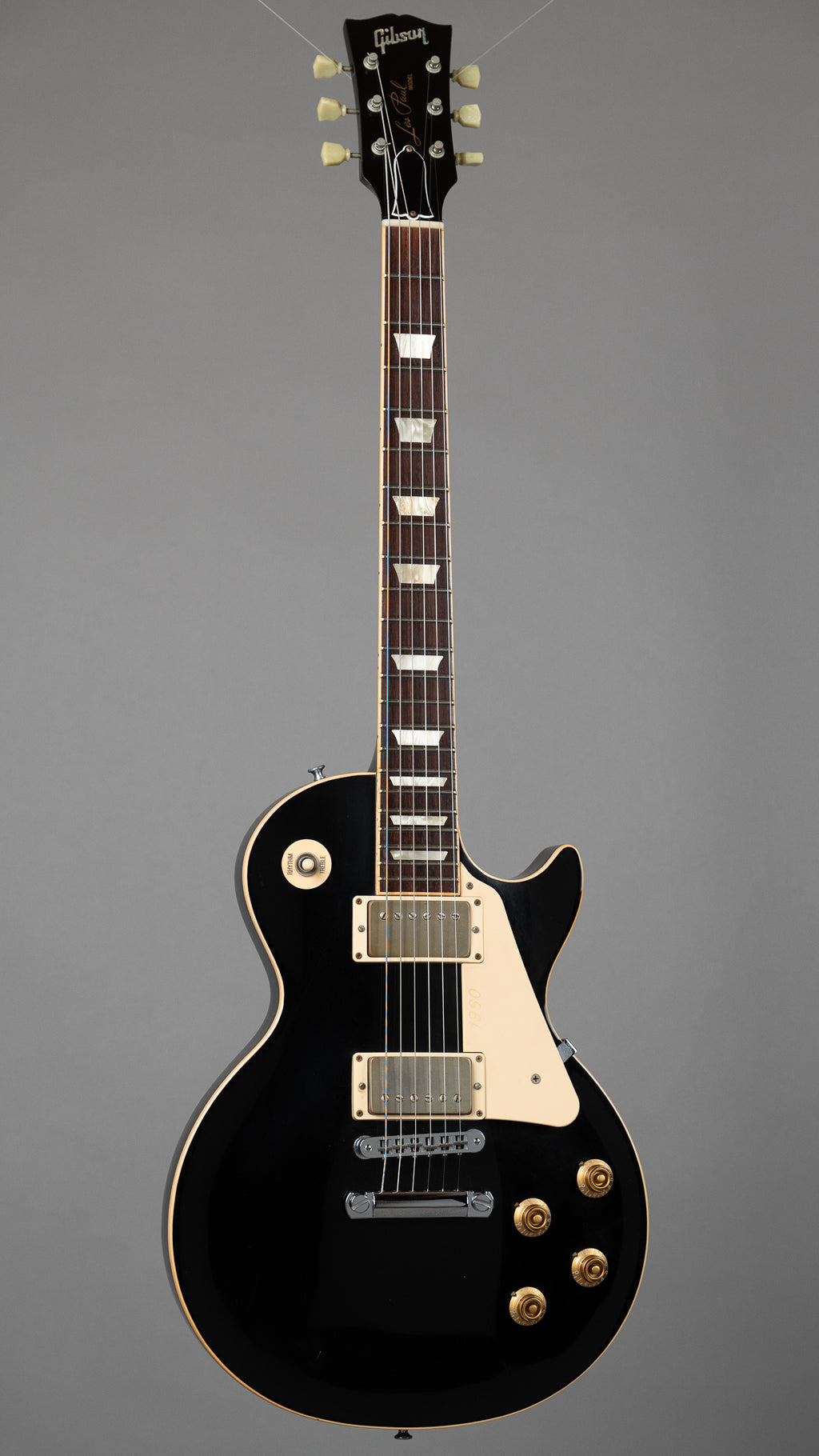 Cool, relatively lightweight LP Classic, in classic (LOL!!!!!!!!!) Ebony finish. Hog and ebony, together as jod intended. Small ding on the back, light scratching and playwear. Frets are in good condition and has been fitted with covered Gibson '57 Classic pickups. Can a Gibson Les Paul be beaten in a black finish?