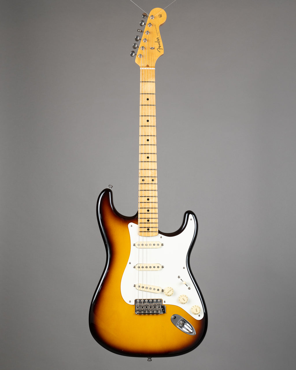 The American Vintage '56 Stratocaster guitar takes you back to mid-1956, when the model was still new and a brand-new musical phenomenon called rock 'n' roll was making its first raucous waves. Built with original tooling and based directly on real-deal 1956 models we tracked down, this U.S.-made guitar returns you to that electrifying era when the Strat was just beginning to stake its claim, with pure tonal magic, style and feel." Comes with the original tweed case, backplate, trem arm, bridge cover etc. V1200588 Weight: 3.5kgs