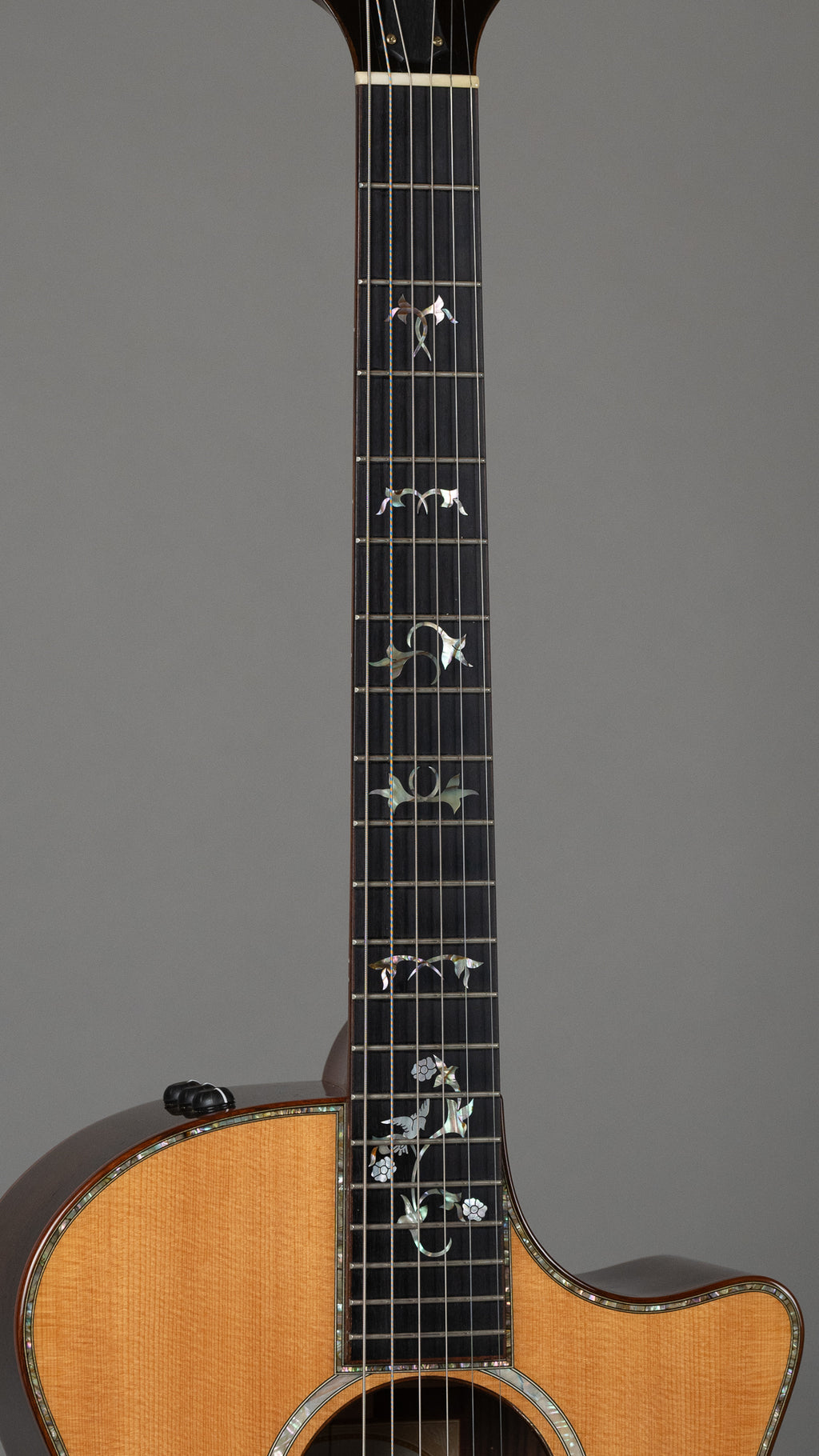 Mother of pearl inlays/rosette/headstock inlay.