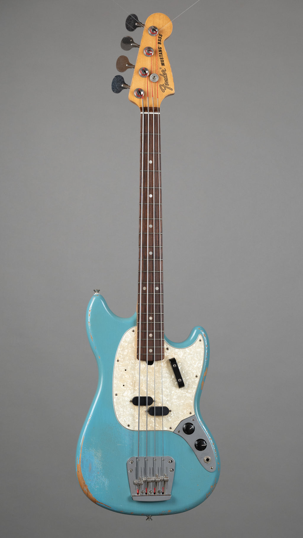 "Known as a true renaissance man of the modern music scene, Justin Meldal-Johnsen's bass credits include Beck, Nine Inch Nails and more. His production credits include Jimmy Eat World, Paramore and M83, among others. JMJ is a shining example of today's breed of multi-genre musician/producers, ever pushing boundaries and inspiring others. From studio to stage, Justin's treasured '66 Mustang Bass is his tool of choice. We teamed up with him to create a signature 4-string modeled after his vintage Daphne Blue instrument - the Justin Meldal-Johnsen Road Worn Mustang Bass. Powered by a custom-spec split-coil pickup, the JMJ Road Worn Mustang bass is perfect for laying down punchy basslines with plenty of Fender mojo. The 30" scale gives it a tight, focused tone while the modern 9.5"-radius fingerboard with rolled edges offers a familiar feel that will make any bassist feel right at home.Designed for comfort and speed, this bass also has stage-ready style. From the nicks and picks scratches on the body to the worn-in feel of the neck to the aged hardware, this bass shows the marks of an instrument that has earned its stripes out on the road."