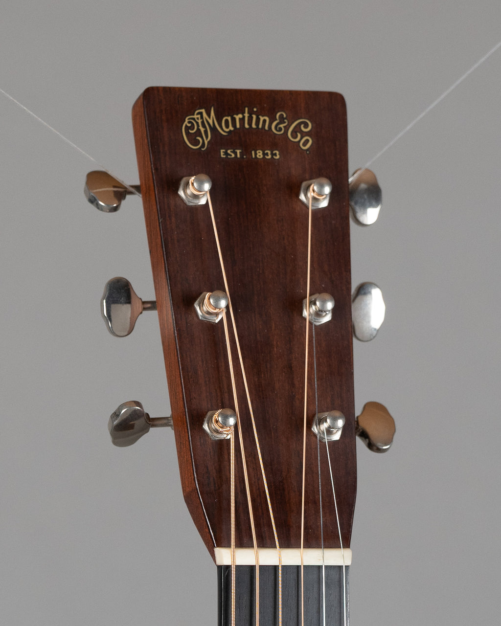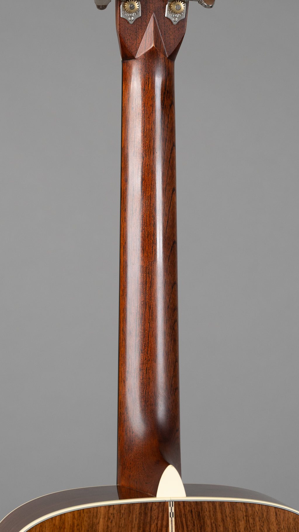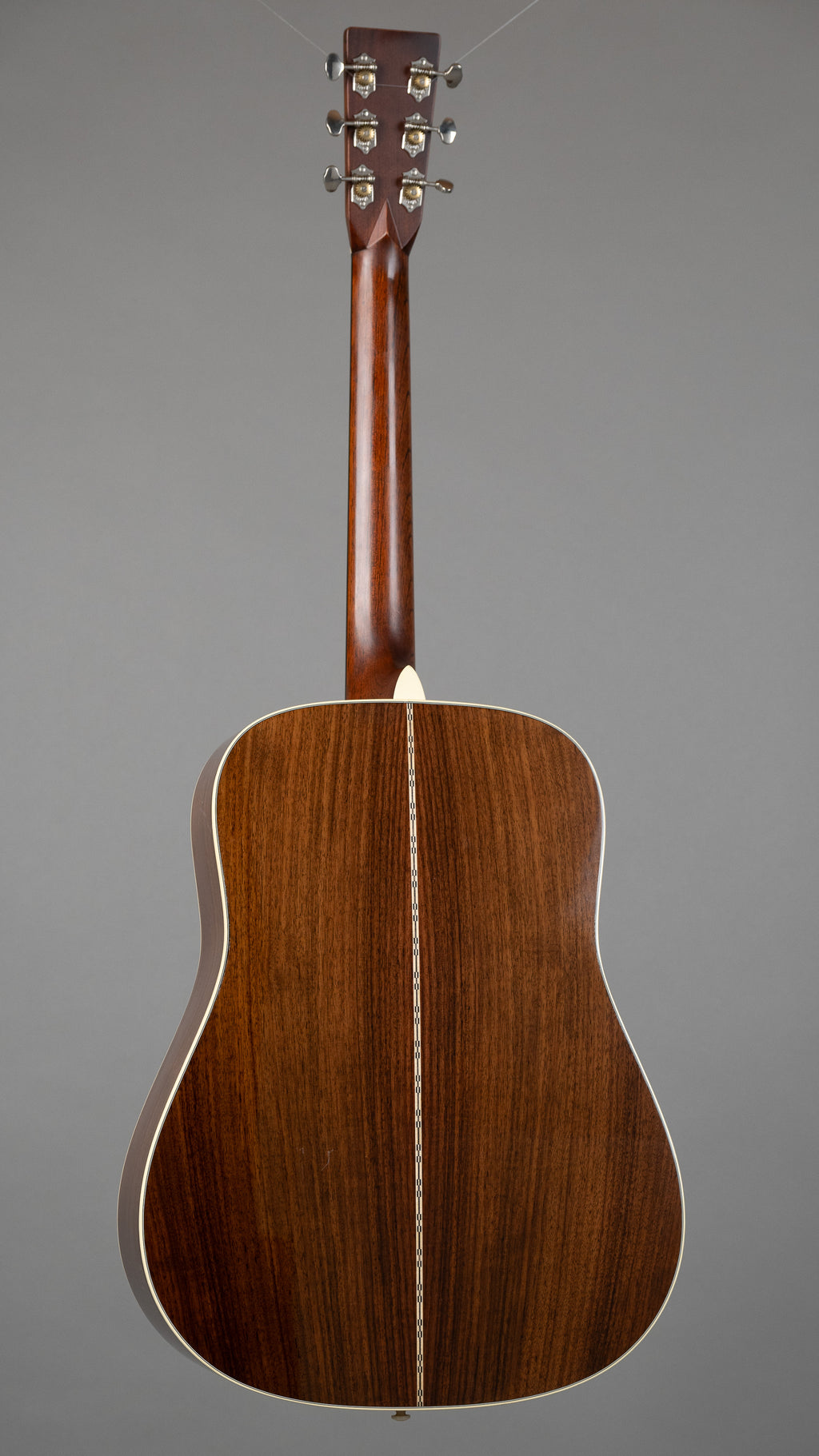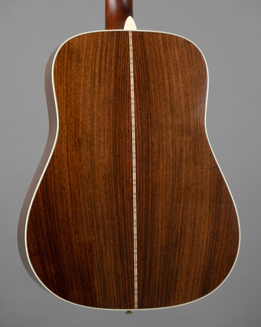 Spruce top, East Indian rosewood back and sides, and a satin-finished mahogany neck with a modernised profile. Other "reimagined" specs include a forward-shifted, non-scalloped X-bracing approach and a 1-3/4-inch nut wide bone nut.