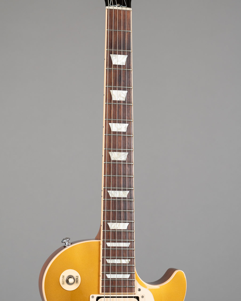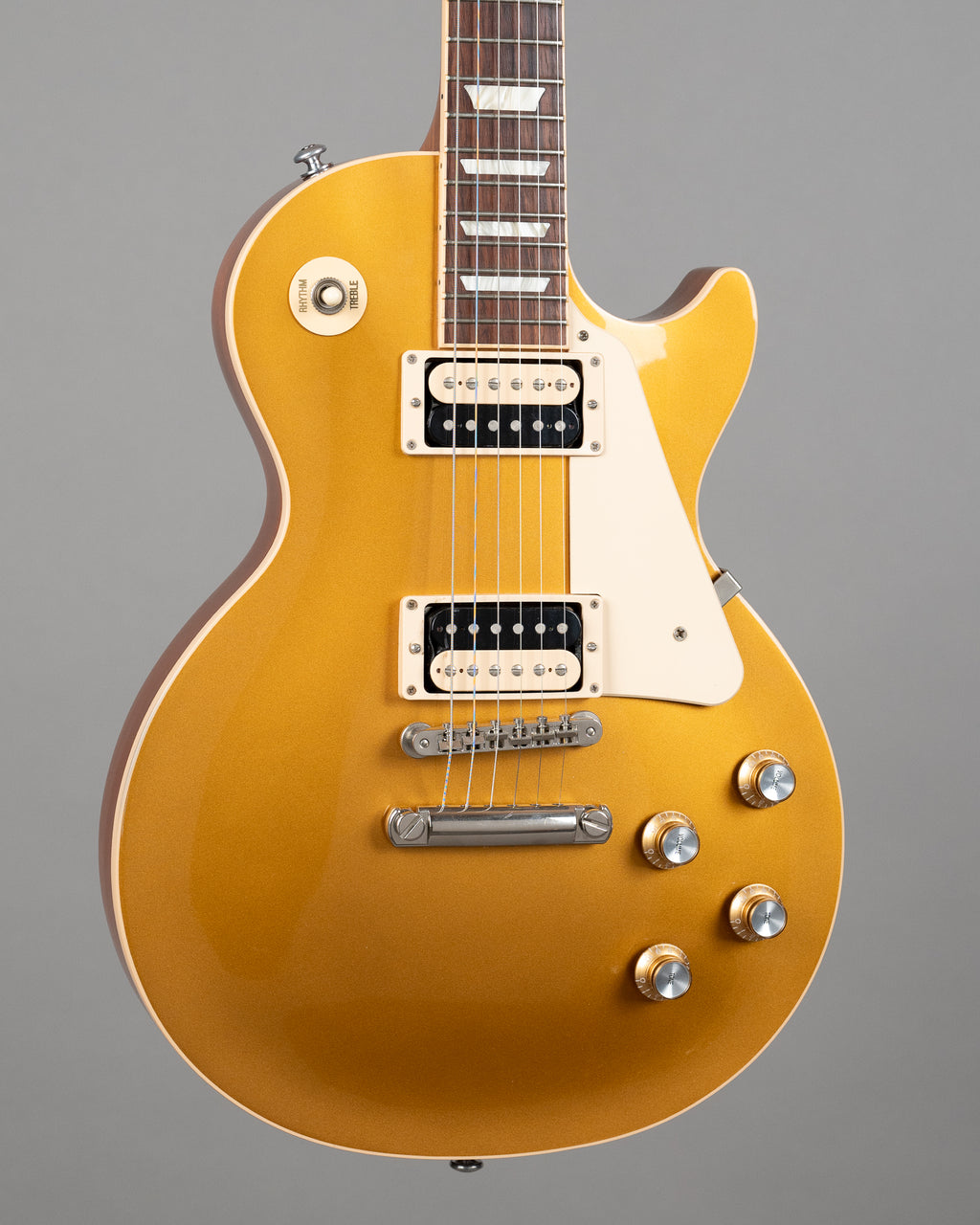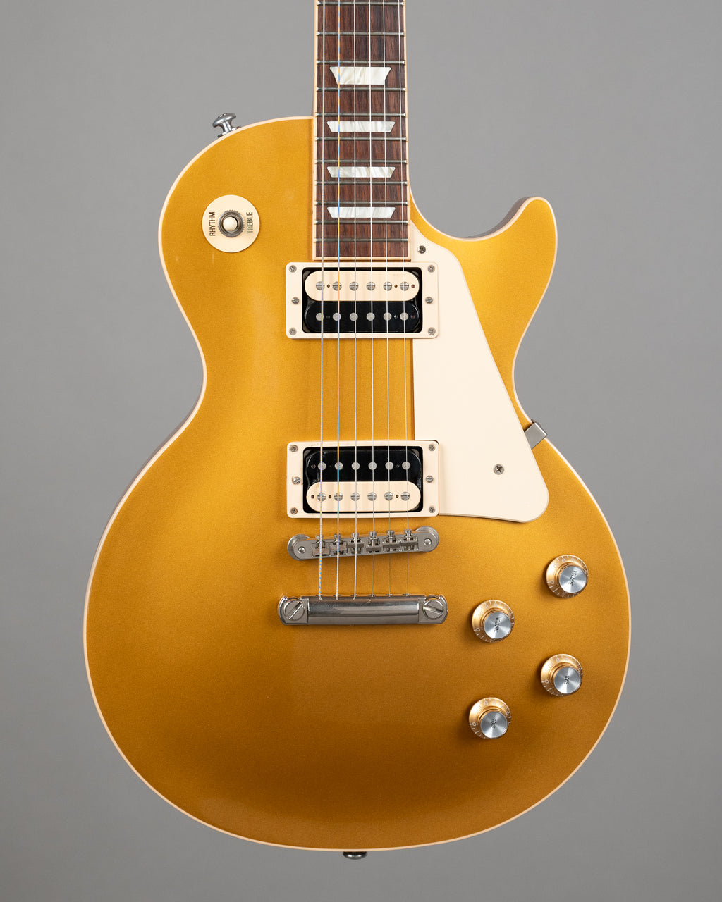 Clean late-2010s Classic with the stock zebra Burstbucker 61 pickups. Nice looking, always classy gold top, tidy hardware, and an easy player overall. Two-piece mahogany body with the centre seam showing an aesthetic lift at the join. Presents very well and has that confident modern LP feel. Freshly serviced and running a freakishly low action.