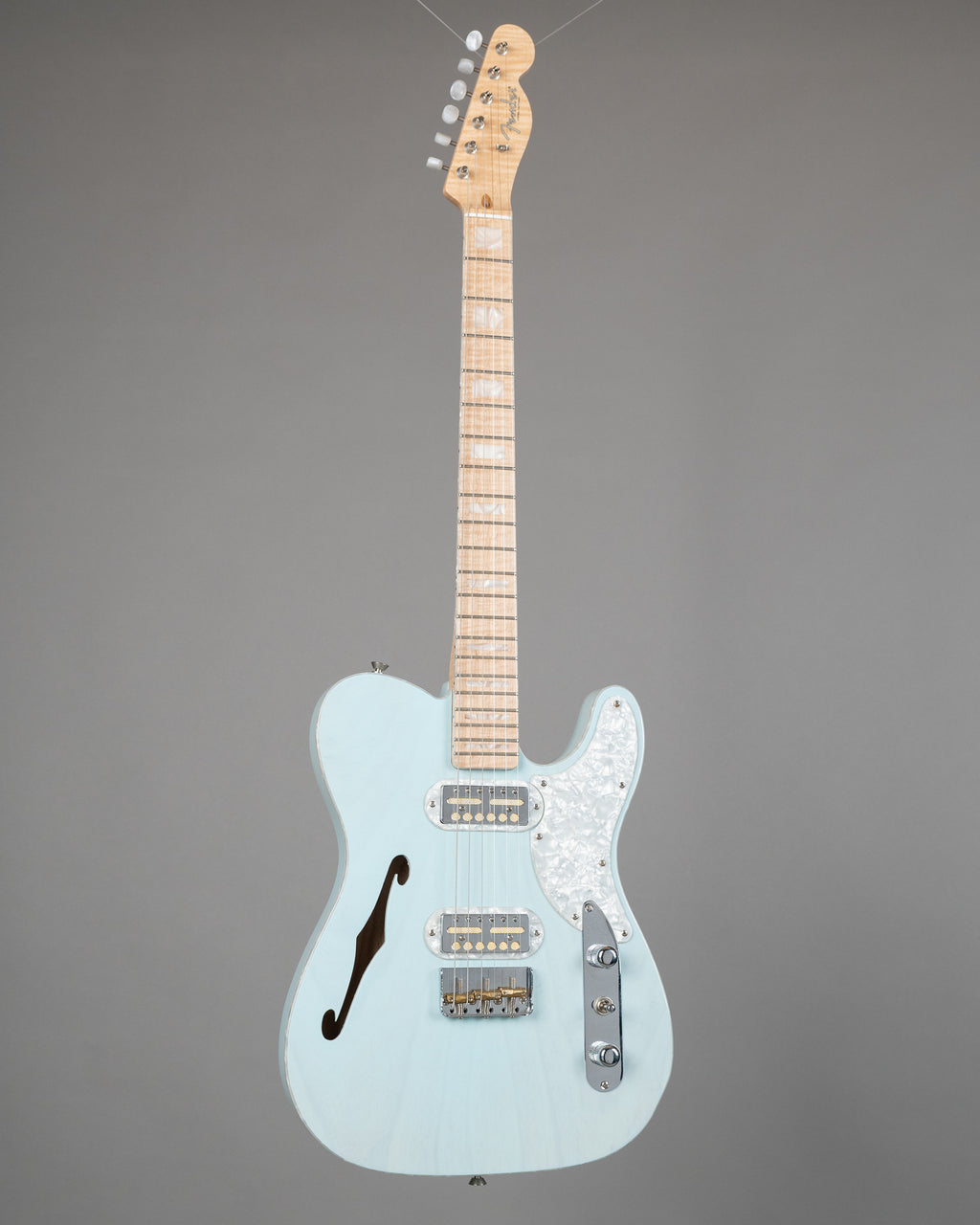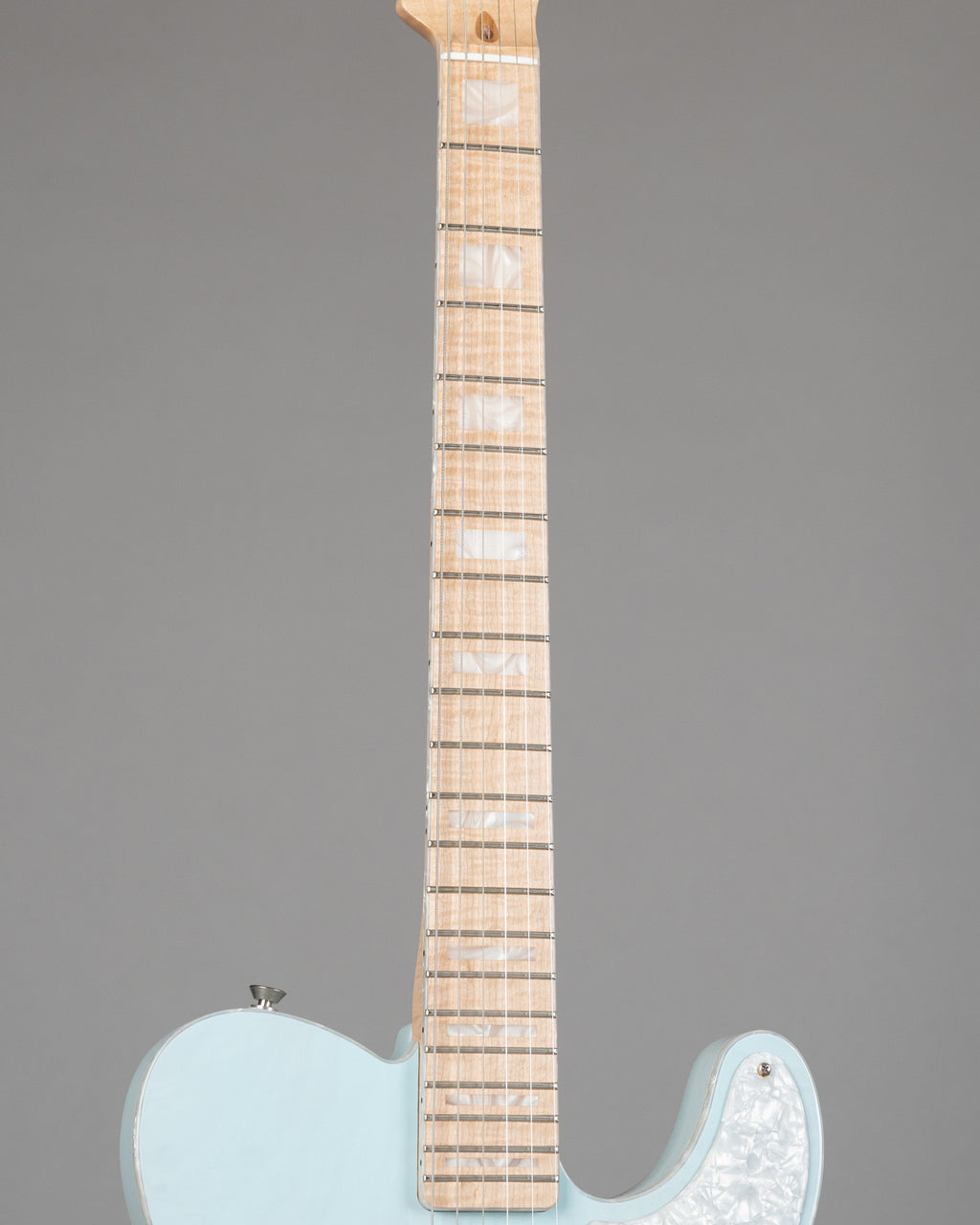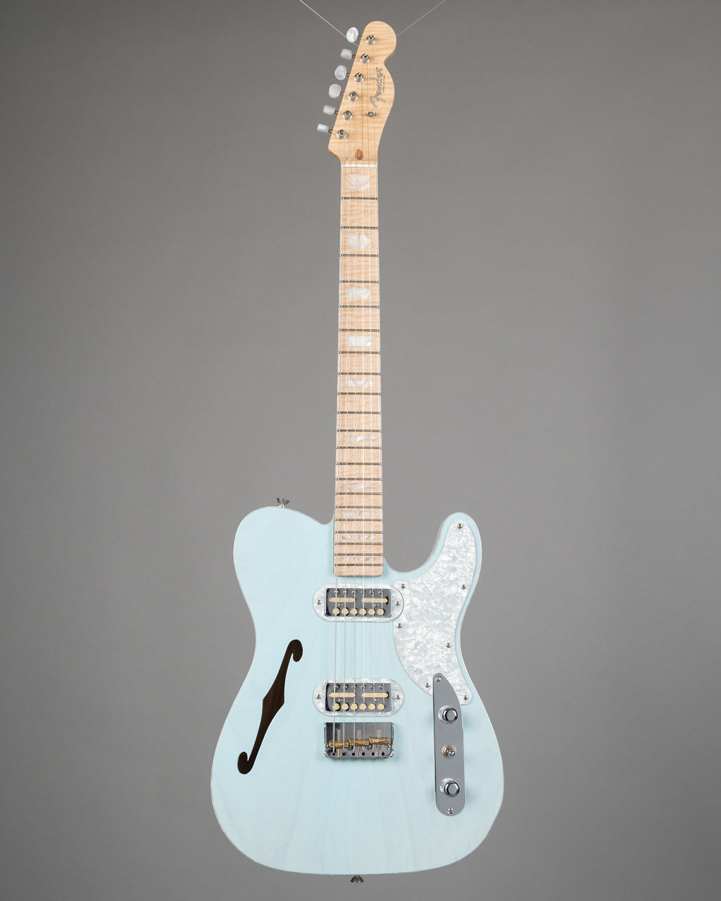 Tidy Fender Magico. It's magic..I'm sure of it. 'Pearl, nickel, and gold - the Parallel Universe Volume II Tele® Mágico isn't afraid to show off. Designed with Fender Custom Shop Master Builder Ron Thorn, the Tele Mágico exudes cowboy class with its extravagant appointments, figured woods and custom pickups. Pearloid pervades - generously used for binding, inlays, tuning pegs, custom pickup rings and the Cabronita pickguard. The neck is flame maple and the Thinline swamp ash body is accentuated by the Trans Daphne Blue or Trans Surf Green gloss finish choices in a twist on classic Fender color conventions. Two custom-designed Fender Gold Foil pickups deliver crystalline highs, expressive mids and creamy lows. The "cut" 3-saddle Tele bridge delivers classic Tele tone and feel despite its stylishly sleek silhouette. And the comfortable custom neck profile, which transitions from a "V"- shape to a "C"-shape as you make your way up the fingerboard, is ideally suited to both rhythm and lead styles.