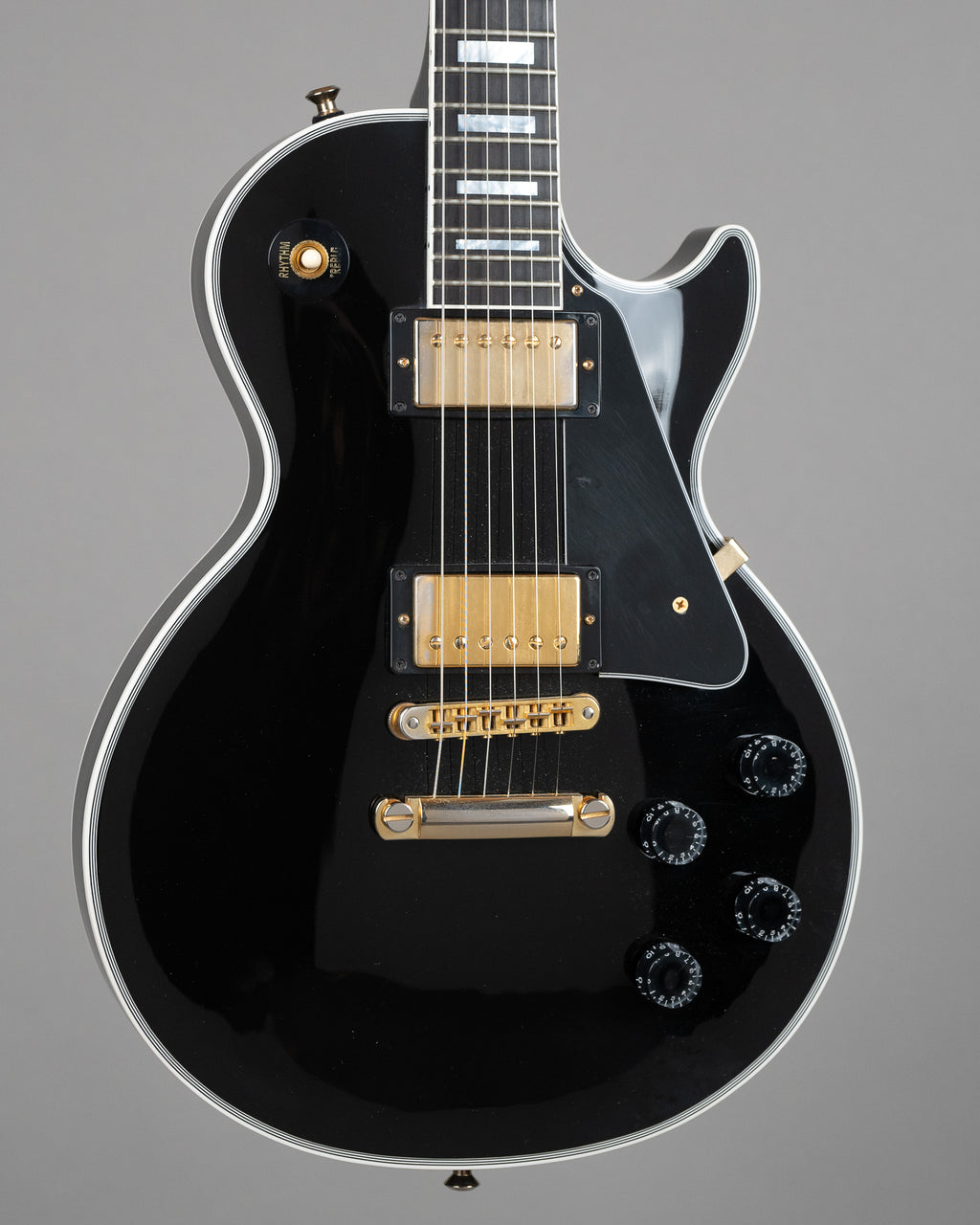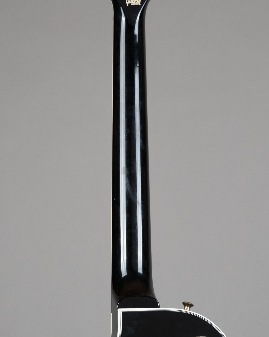 Proper modern Black Beauty from the Custom Shop. This one is from the 70th anniversary year with the CS 202356 serial stamp, finished in that deep glassy Ebony that always looks right under stage lights. Very good to excellent condition with only the light signs of play and a few very minor aesthetic finish blemishes (very clean for a gloss black nitro finished guitar). Frets are clean, hardware is bright, and it feels every bit like the high end build it is. Thick, sustaining LP punch with a fast modern carve and the usual Custom weight and authority. Also this one is relatively light!
