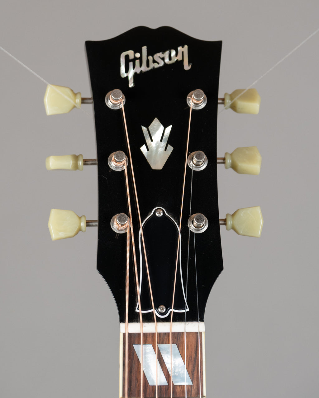 Lovely condition Gibson J-185 Acoustic...bought new and barely played by the first owner. Here is the spiel from Gibson: "The J-185 is believed by many to be one of Gibson's best acoustic instruments, yet it seems to be fairly obscure, much to the delight of devoted Gibson lovers. Originally released in the early 1950s and designed to be slight smaller than its larger companion, the SJ-200, the J-185 still offers superior performance and tone. The J-185 Original maintains unsurpassed balance of lows, mids, and highs, with equal response to every note on the fretboard. Acclaimed by many as the perfect body size and shape for any player." Made in the USA, has an LR Baggs pickup stock, and comes with the Gibson hardshell case. SN 21812038.