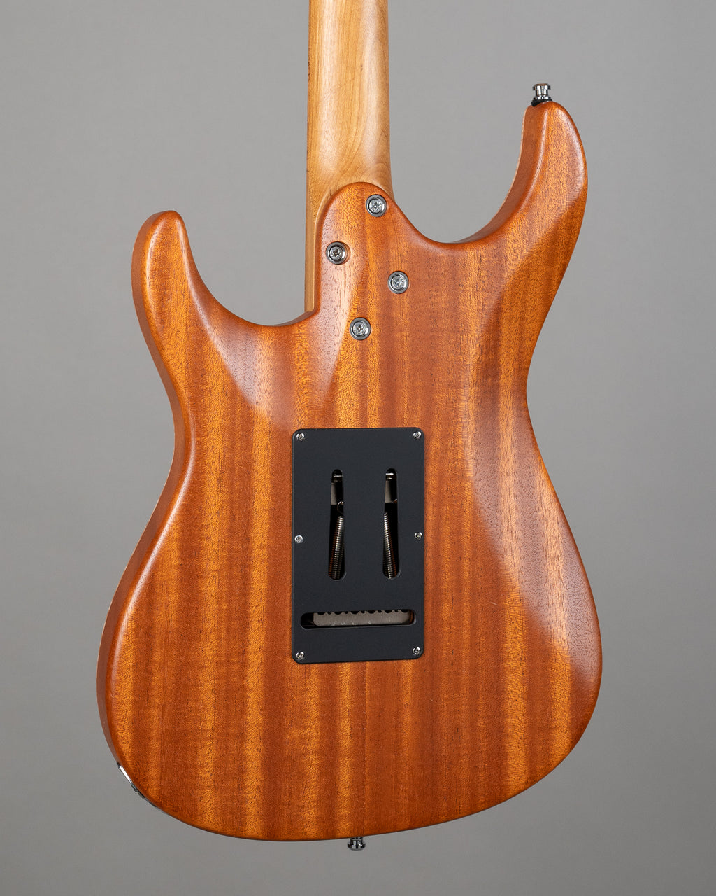 25.4" scale roasted maple (TEW) bolt neck with two graphite rods, roasted (TEW) 3A birdseye maple board, luminlays on the side, and 24 Ferd Wagner stainless steel medium-jumbo frets. 4A flamed maple top on a Khaya Mahogany body, finished in Trans 2-Tone Sunburst, gloss top with satin back and sides. Also has a neat little flamed maple binding detail. Extremely comfy neck heel with a deep cut-away for unlimited access to the forbidden notes.
