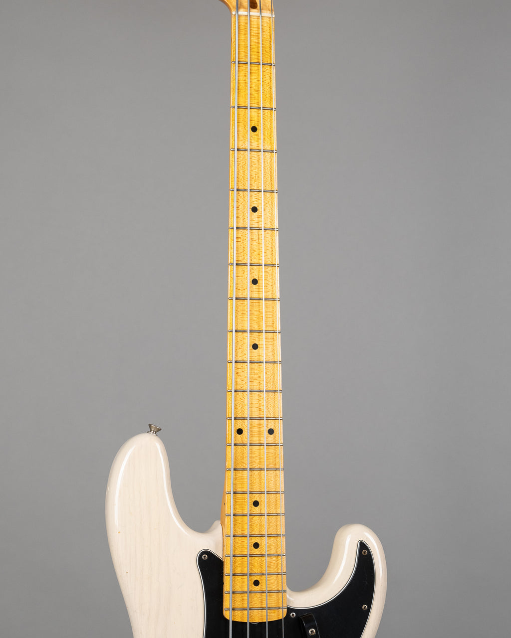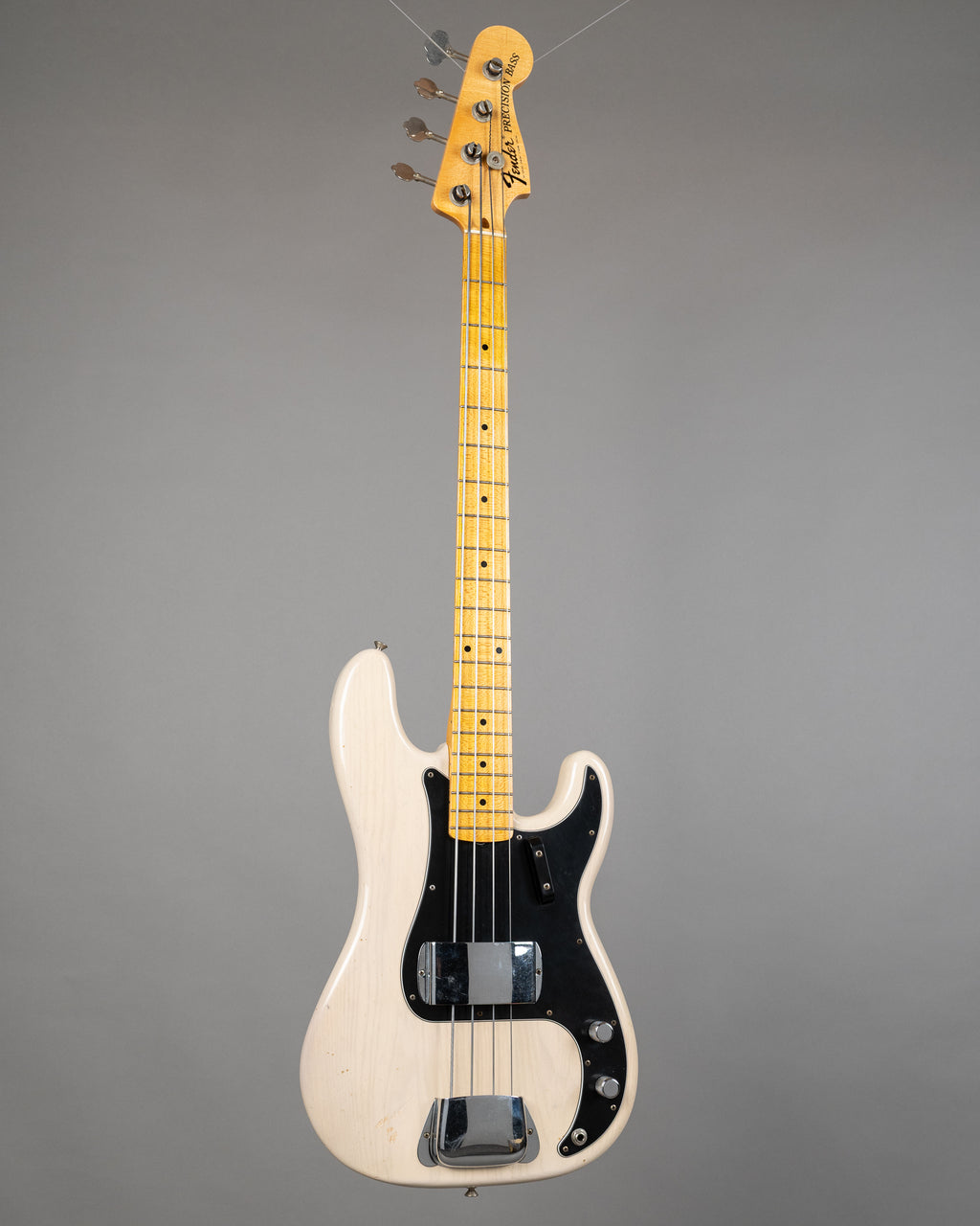 Really interesting spec mix here. Blonde, almost 50s in vibe, paired with black plastics, tinted maple and the larger 70s logo. Makes for a unique aesthetic. Resonant, dry, and very responsive, especially with the LaBella flatwounds currently fitted. One of those basses that just does the thing.