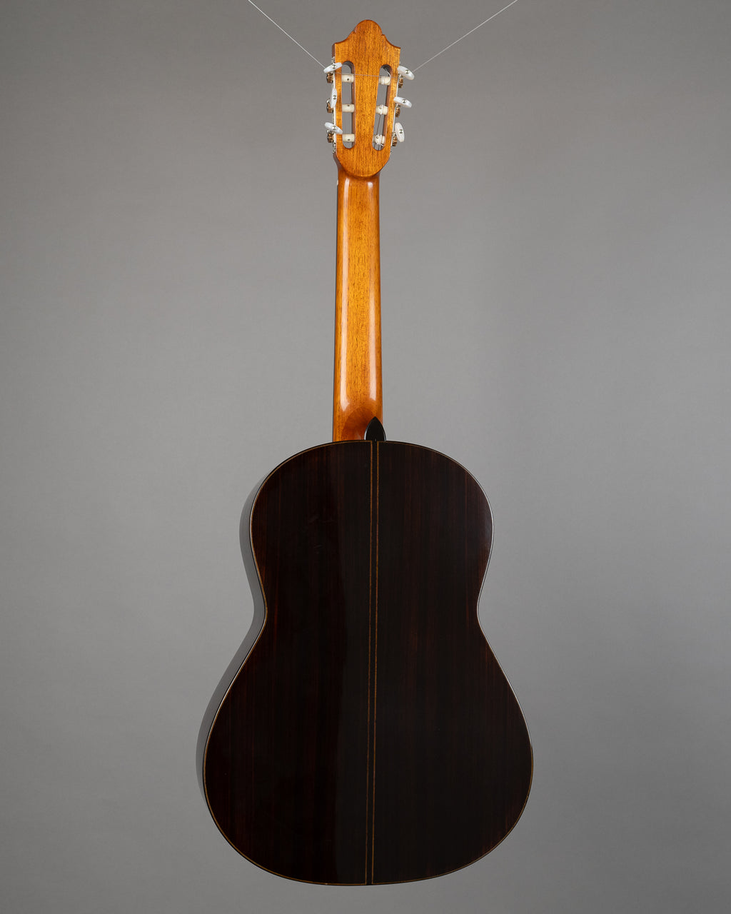 Materials of course are well-selected, thanks to the generosity of his father who lets Giovanni select from his private stock of select woods. For the back and sides, he used a set of very dark Indian rosewood, which he personally believes to be the most beautiful type available.
