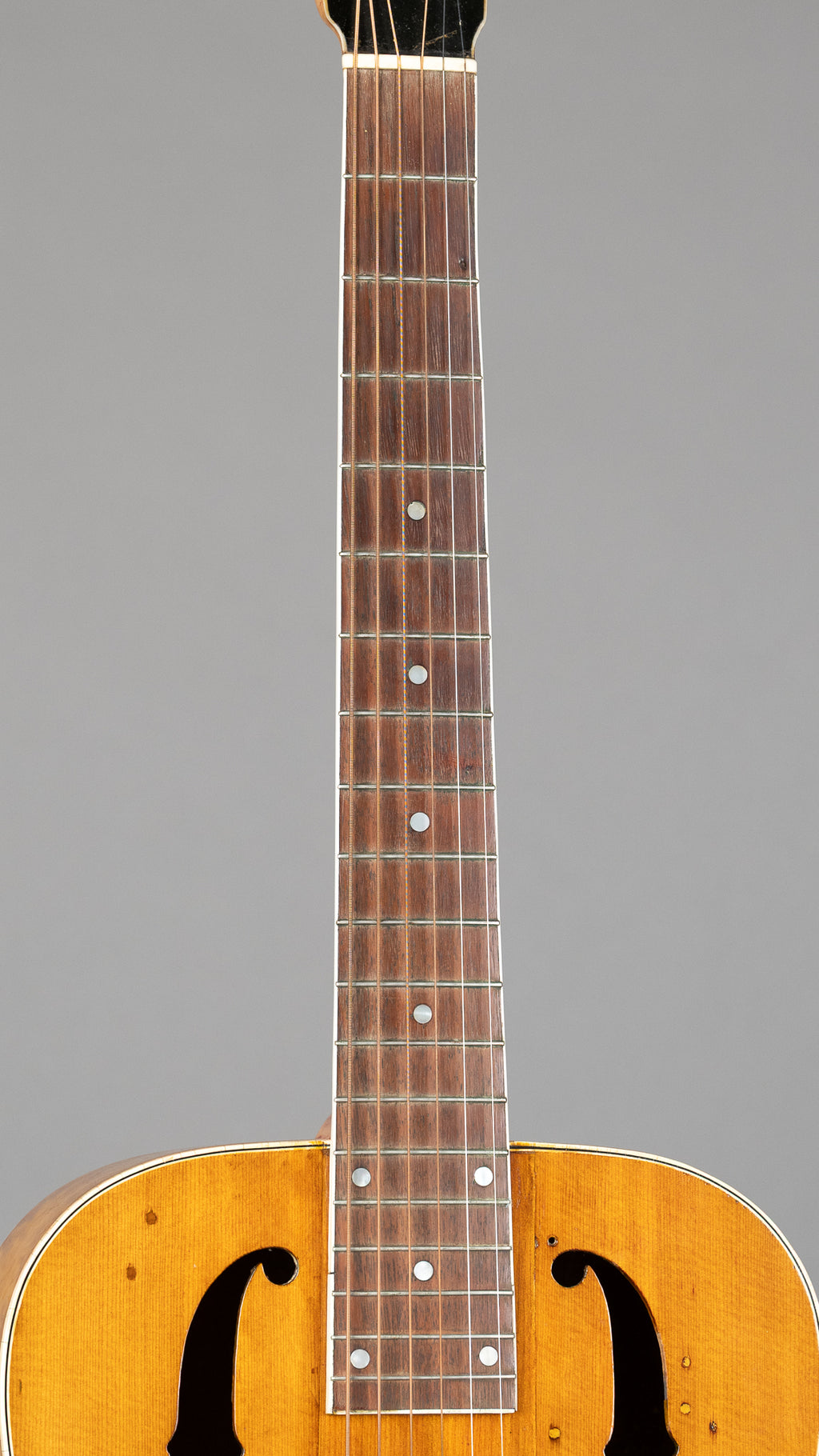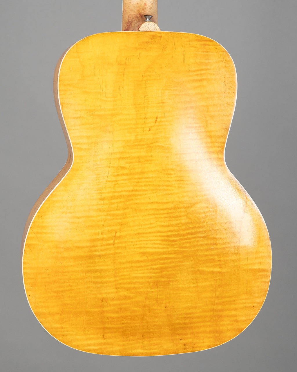 Flamey back and sides (originally would have been sunburst, now stripped) and a gorgeous top showing some scars from pickups and god knows what over the years. Neck has been skinnied down..but nout gets in the way of the sound of this thing..it's a bloody cannon.