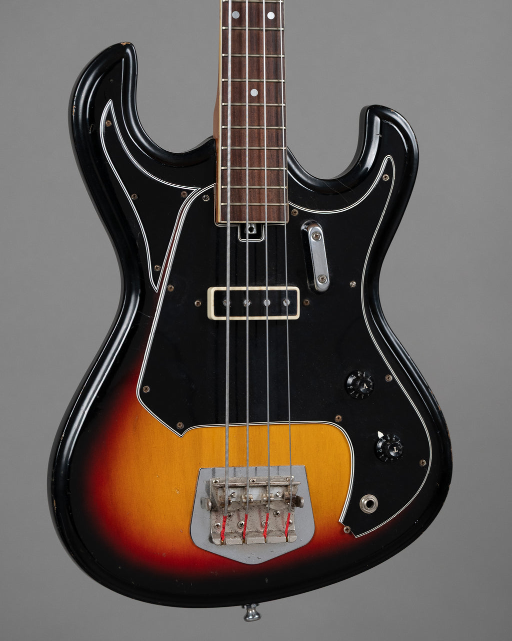 Pure oddball Japanese bass mojo from the late ’60s, dressed in a sunburst finish and strung with flats. Short scale, light as a feather at 2.65kgs, and loaded with all the thump and clank you’d expect from the golden age of catalog-store instruments. No serial, no frills. If you want the thing… this is the thing. Oh yes.