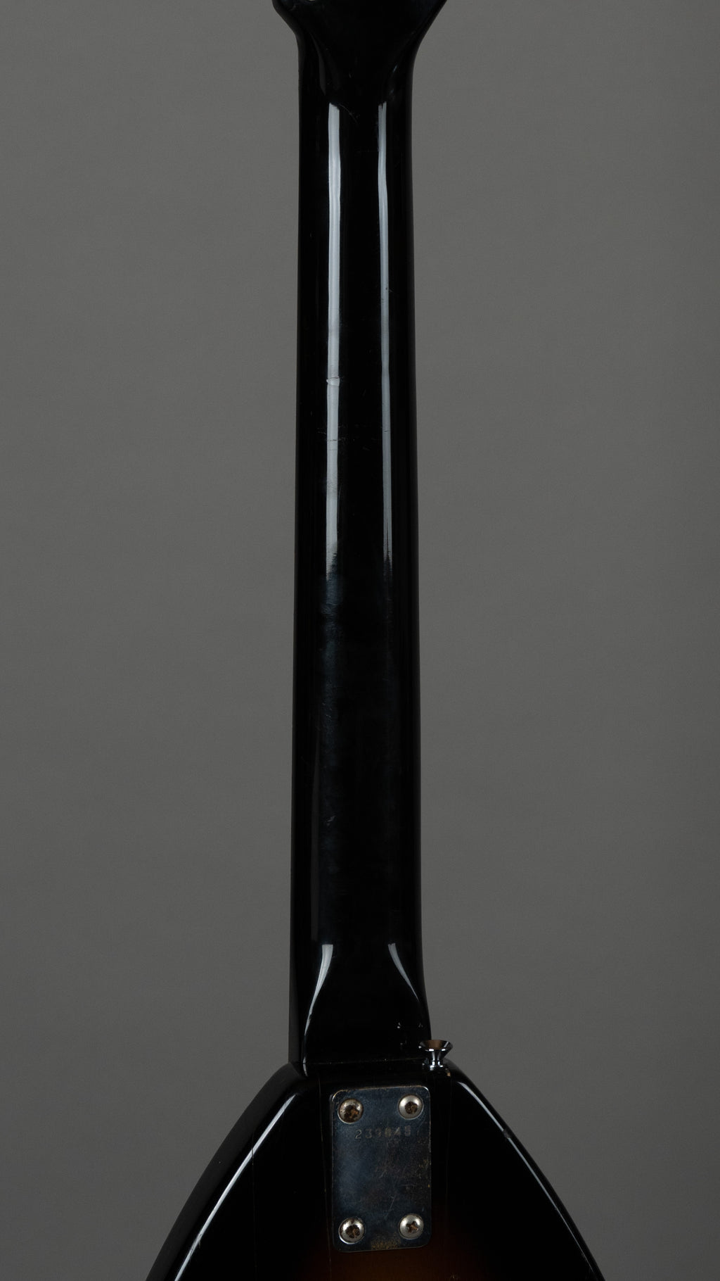 Backplate still intact, mute is missing the rubber, but is still on the guitar. There is some surface cracking in the finish.